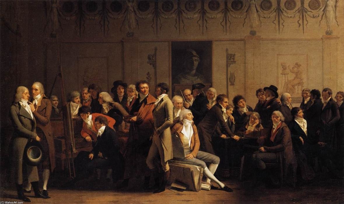 En una sala àmplia, ben il·luminada per un gran finestral, un nombrós grup de persones envolta Adélaïde Labille-Guiardmentre duu a terme el retrat de Joseph-Marie Vien, antic Premier peintre du Roi, director de l’Académie Royale de Peinture i Sculpture a l’època en què ella hi va accedir i, ara, senador nomenat per Napoleó Bonaparte. Posa abillat a la manera de la cort, amb perruca blanca i vestit luxós, assegut en una cadira, amb els peus sobre un coixí i el braç dret recolzat en una taula amb esbossos d’obres. Darrere seu, l’esposa, Marie-Thérèse Reboul, i el fill, Joseph Vien -tots dos pintors-, i quatre homes, segurament vinculats ideològicament al venerable ancià -ja té més de noranta anys-. Al costat de la pintora, el marit, François-André Vincent, deixeble de Vien, que li indica alguna cosa; uns col·legues, que comenten el treball, i, en primer terme, també asseguda, amb una paleta a la mà en la qual prepara els colors, Gabrielle Capet, alumna de Labille-Guiard i autora d’aquesta escena, l’única que ens interpel·la amb la mirada. Tot i que, el 1790, Labille-Guiard havia pintat un retrat de Vien a partir del qual Simon-Charles Miger va fer un gravat que va regalar a l’Académie i va provocar una resposta entusiasta per part dels membres, aquesta reunió no va tindre lloc mai. Era, doncs, un quadre d’afirmació de la presència femenina en el món de l’art i de la seua importància.