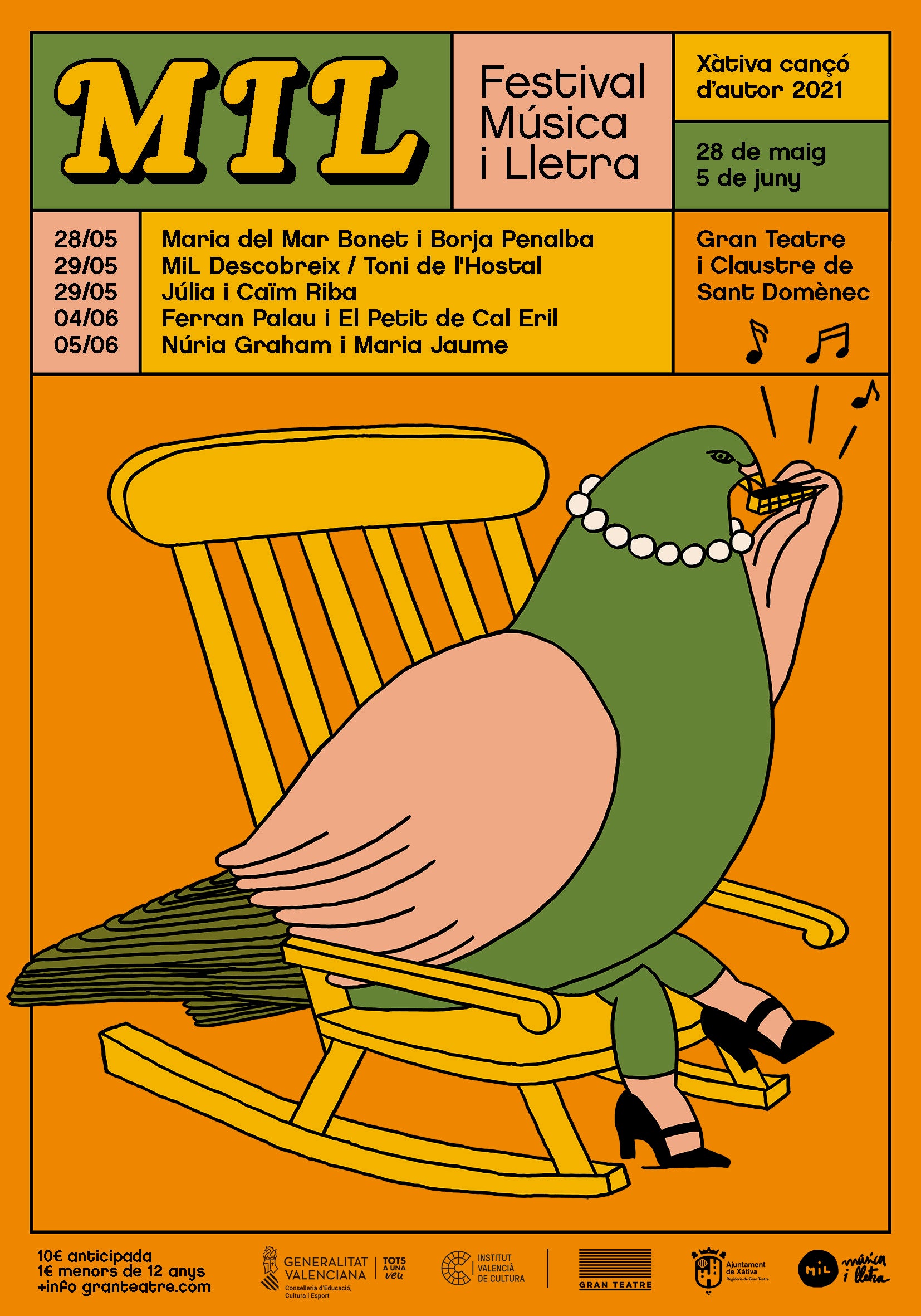 A més, el MiL torna a oferir preus populars d’accés a la cultura pública, amb entrades anticipades a 10, i 1 euros per als menors de 12 anys acompanyats. Les entrades estan a la venda a partir del dijous 29 d’abril, amb aforaments molt limitats, en el web del Gran Teatre de Xàtiva.