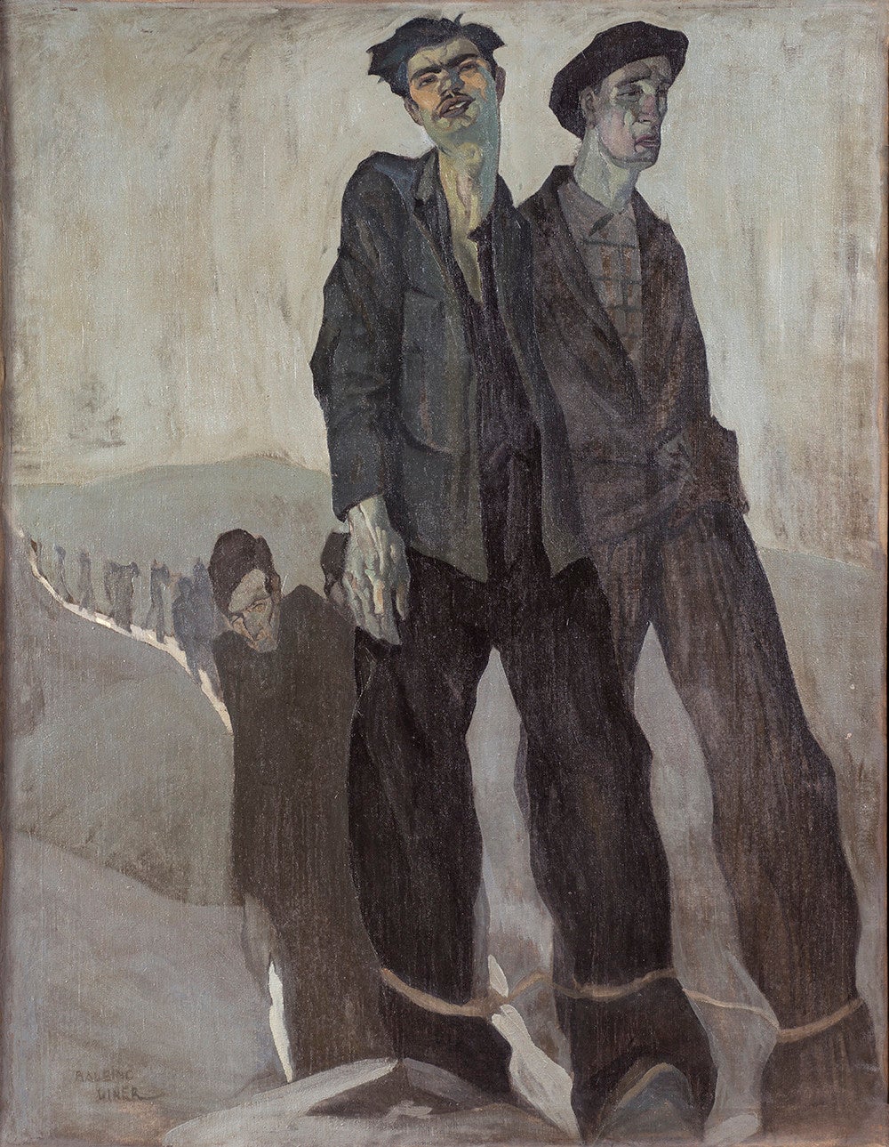 Més jove, i també compromès amb un art més rupturista, Balbino Giner (València, 1910 – Perpinyà, 1976) va donar suport al manifest antisorollista publicat per Josep Renau amb motiu de l’Exposició d’Art de Llevant celebrada, el 1929, al Palau Municipal de l’Exposició Regional. “No a l’art dels vells artistes […] no a l’art dels joves vells…”, hi clamava Renau. El 1931, Giner va aconseguir la plaça de pensionat de la Diputació per continuar estudiant a Madrid i, el 1934, a l’Acadèmia Espanyola de Belles Arts de Roma. Després, es va instal·lar a París amb Pérez Contel. El 1932, va pintar Cordada de presos. Deportats a Bata, una peça que ara podem admirar a Més Museu. L’obra, de caràcter expressionista, colors grisencs i neutres, i tonalitats apagades, i amb dues figures principals contundents, remet a la Revolta de l’Alt Llobregat i a la repressió subsegüent. El gener d’aquell any, la vaga del sector tèxtil a Cercs, al Berguedà, a causa de les condicions de treball pèssimes, va ser secundada pels miners de Fígols i de seguida es va estendre a altres municipis -Gironella, Balsareny, Sallent…-, on els comitès revolucionaris van ocupar els ajuntaments i van proclamar la instauració del comunisme llibertari. El govern republicà, presidit per Manuel Azaña, decidit a acabar amb la sublevació i a aplicar un càstig exemplar als responsables, no va acceptar la proposta de negociació de Lluís Companys, i va enviar-hi l’exèrcit, que va reduir en poc de temps els revoltats. Malgrat que no hi va haver trets ni víctimes, més de cent arrestats, entre els quals reconeguts militants anarquistes considerats perillosos, com ara Durruti i els germans Ascaso, que no hi havien intervingut, va ser deportats sense judici a l’Àfrica Occidental Espanyola, passant per Cadis, Fuerteventura, Dakar, Bata (Guinea Equatorial), l’illa de Fernando Poo (actual Bioko) i Villa Cisneros (Sàhara). Un periple de mesos a bord del vell vapor Buenos Aires en el qual es van produir motins, vagues de fam, malalties, fugues i va morir un dels presos.