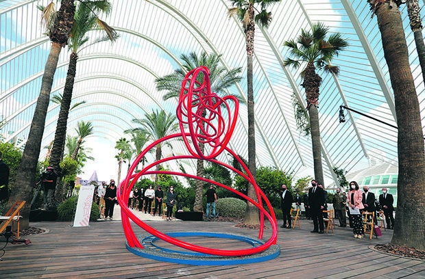 No era només fer una peça escultòrica seguint les meues investigacions i la meua línia de treball, sinó que havia de representar un sentiment i un moment molt concrets. Per part meua, vaig dotar a l’escultura d’espai obert, perquè fóra transitada per l’audiència, perquè no tinguera distància amb el públic. També vaig buscar donar calidesa, mitjançant les formes arredonides i el color rojós i que l’aire recorreguera la peça, que no fóra un bloc massís, que respirara.