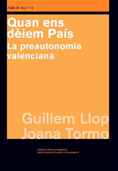 La Institució Alfons el Magnànim-Centre Valencià d’Estudis i d’Investigació acaba de publicar Quan ens dèiem País. La preautonomia valenciana, de Guillem Llop i Joana Tormo, dins de la col·lecció Adés&Ara, especialitzada en història contemporània, dirigida pel catedràtic de la Universitat de València Ismael Saz i codirigida per l’historiador Ferran Archilés.