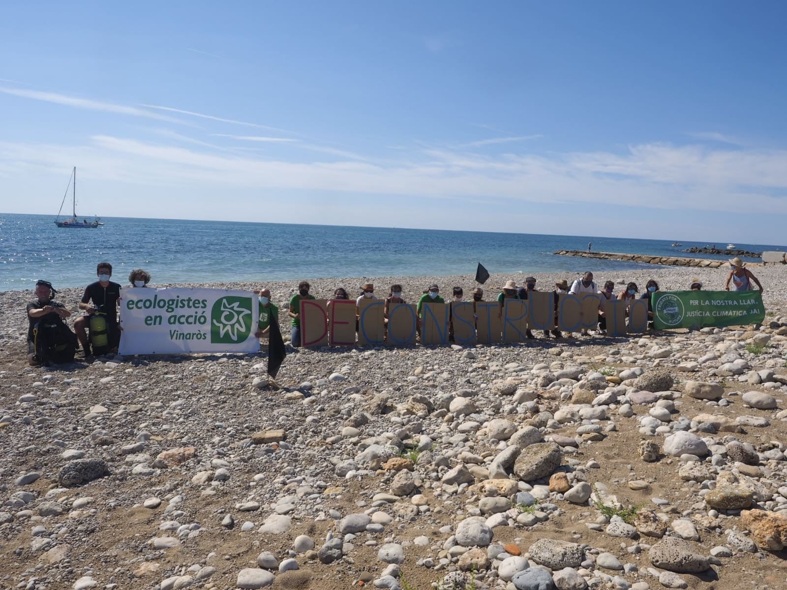 En la platja del riu Cervol, que és bandera negra per mala gestió del litoral, i sota el lema «Desconstrucció» s’ha desenvolupat l’acció aquest diumenge per tal de reivindicar un litoral natural. Aquesta platja compta amb el distintiu negre, ja que s’ha destruït la desembocadura del riu Cervol i s’ha creat un gran espigó de canalització. A més, «el litoral vinarossenc està sent alterat per l’urbanisme permissiu, les nefastes actuacions que s’han fet en la seua costa, la concentració de residus sòlids i els abocaments d’aigües residuals, la pesca d’arrossegament, etc.» afirmen en un comunicat. És per això que de manera simbòlica i a tall de denúncia, les activistes han omplit la platja de banderes negres.