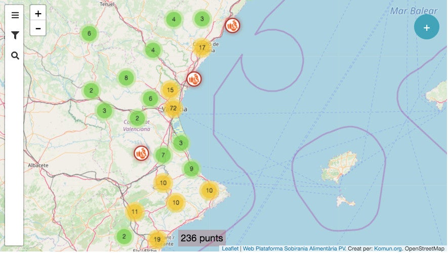 A més, aquest projecte ofereix un mapa virtual en què es poden localitzar establiments de consum responsable, mercats camperols, obradors compartits, llocs de producció local i diferents recursos i organitzacions relacionades amb la sobirania alimentària. El mapa compta amb més de 230 punts repartits al llarg de la geografia valenciana i l’objectiu és que l’usuari s’assabente dels llocs que té a prop de casa on pot consumir d’una forma més responsable amb l’entorn.
