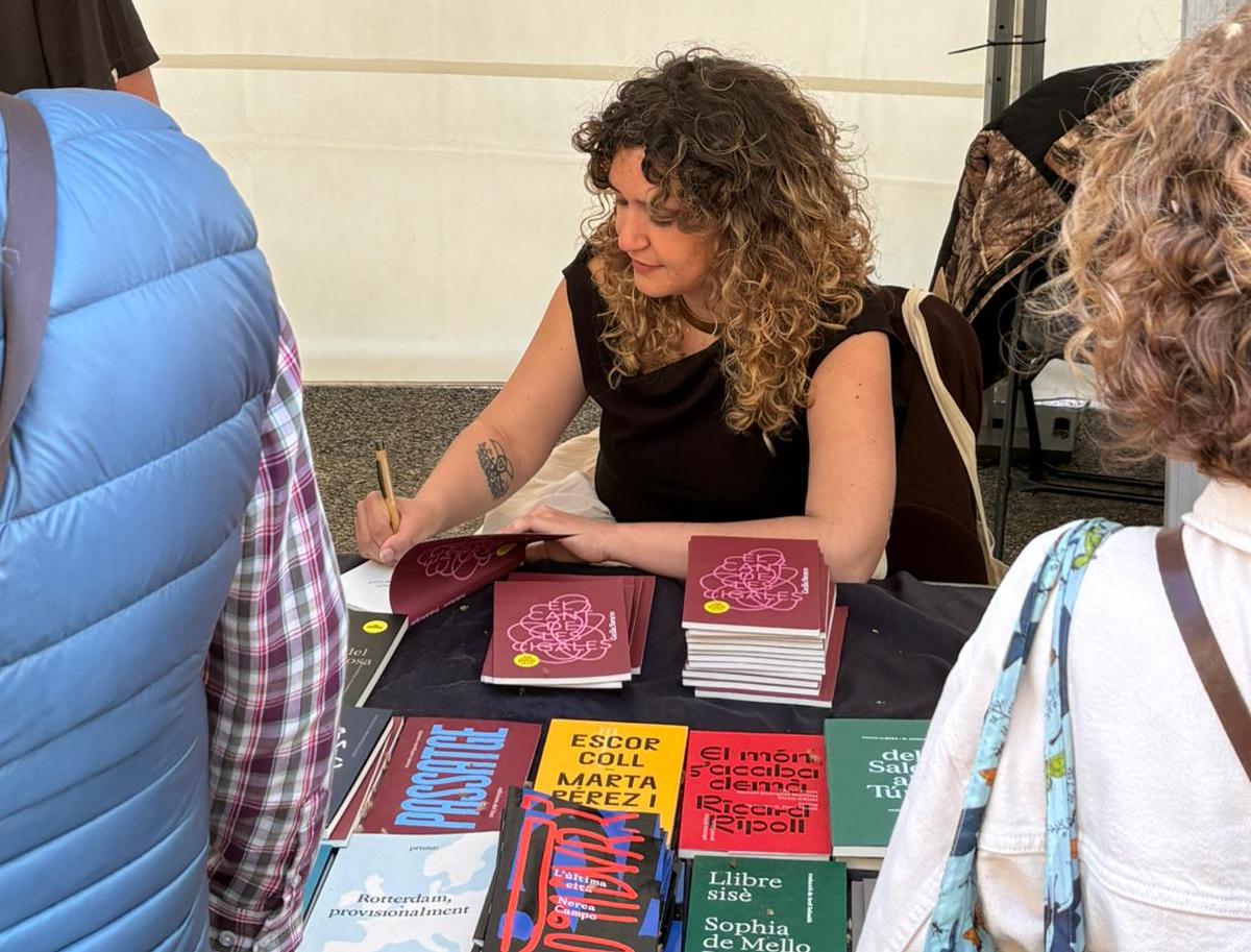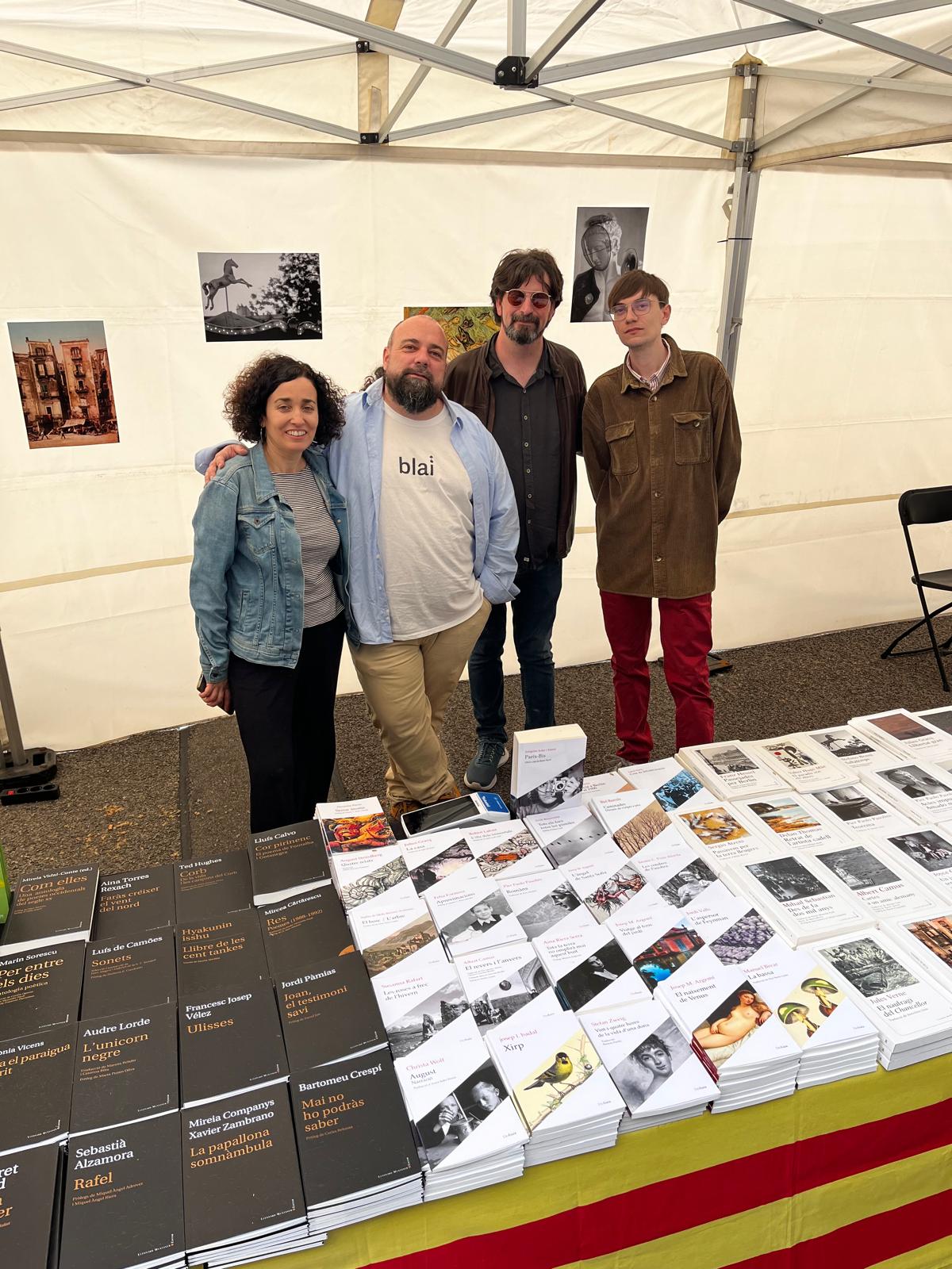 Passege amunt i avall al llarg del dia, sé que hi han vingut alguns editors del País Valencià. Són agosarats, el viatge, amb uns trens escassos i sempre en retard, és pesat i Sant Jordi tampoc no és un dia de grans vendes per als més petits. Tanmateix, “cal estar-hi” i “fa goig”, així ho conta Pau Sanchis, d’Edicions del Buc: “Abans enviàvem només els llibres a alguns companys i des de fa uns anys hi venim personalment. I sí, és una pallissa, he estat viatjant tota la nit en autobús perquè calia estar ací a primera hora del matí, però val la pena, si no per les vendes, que no en són tantes, per viure Sant Jordi de prop, perquè els nostres llibres estiguen ací, i saludar altres companys editors amb qui compartim parada i diada, amarar-te de la festa. És un gran dia, molt més enllà de les xifres”, explica Pau Sanchis.