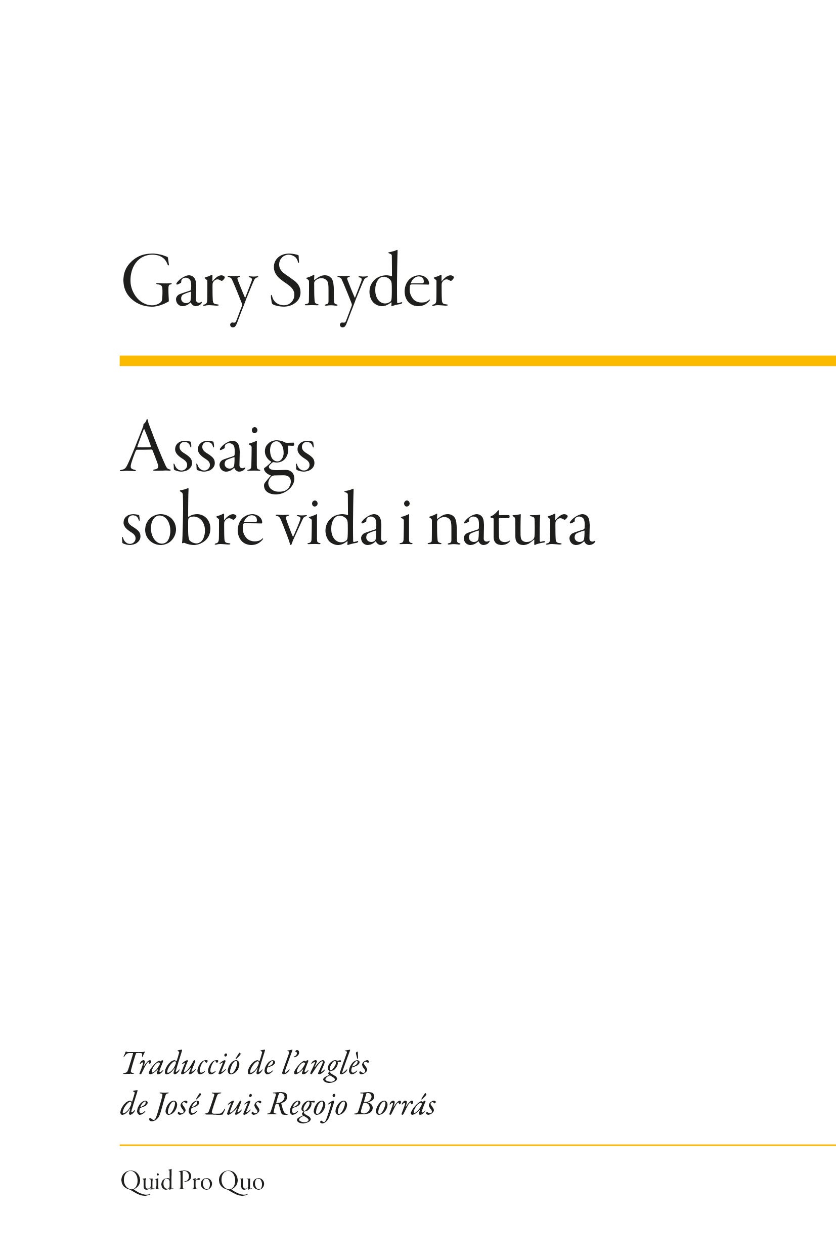 Gary Snyder, Assaigs sobre vida i natura. Traducció de José Luis Regojo Borrás. Col·lecció Assaig (n.2) Quid pro quo Edicions de Pollença, 2019
