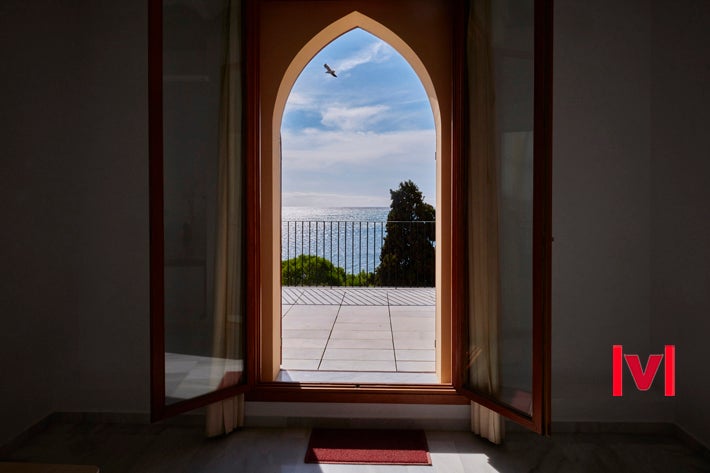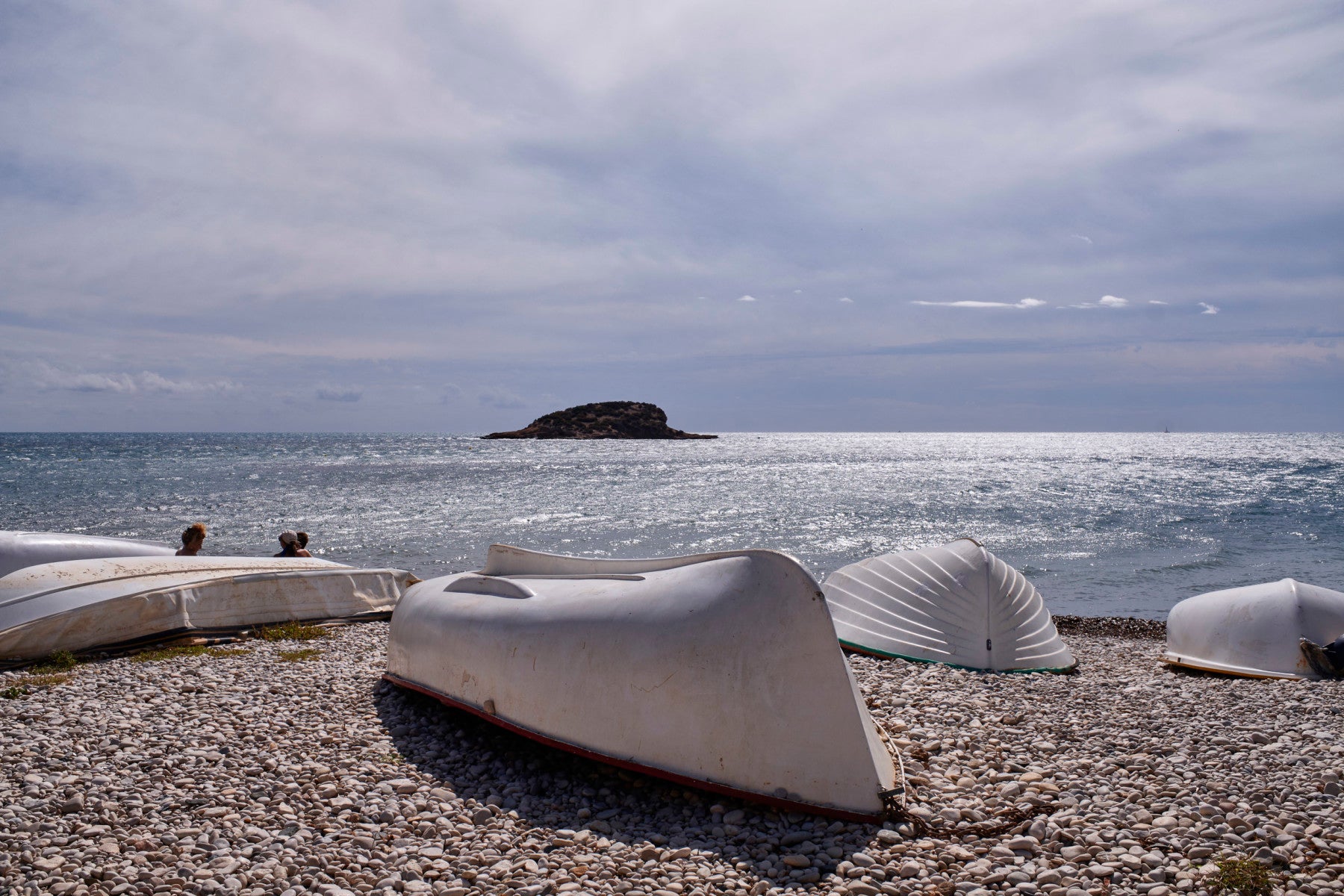 Allí, elevada davant la mar, enfront de l’Illa que sura massissa enmig de la blavor i voltada d’oliveres supervivents, entre pins i xiprers, s’hi domina la caiguda a la platja. Es baixa per unes escaletes, per un jardí sàviament ordenat que, vist des de baix, sembla inspirat en els marges de pedra que devien sostenir bancals desapareguts. Les ones venen a llepar una estesa de cudols redonets i d’alga. Quan es retiren sorollen d’una manera que només es pot comparar a la remor de les fitxes de dòmino, quan les barrejaven damunt les taules de marbre als vells casinos. Hi ha pau, silenci, almenys des de mitjan setembre. No es pot demanar més.