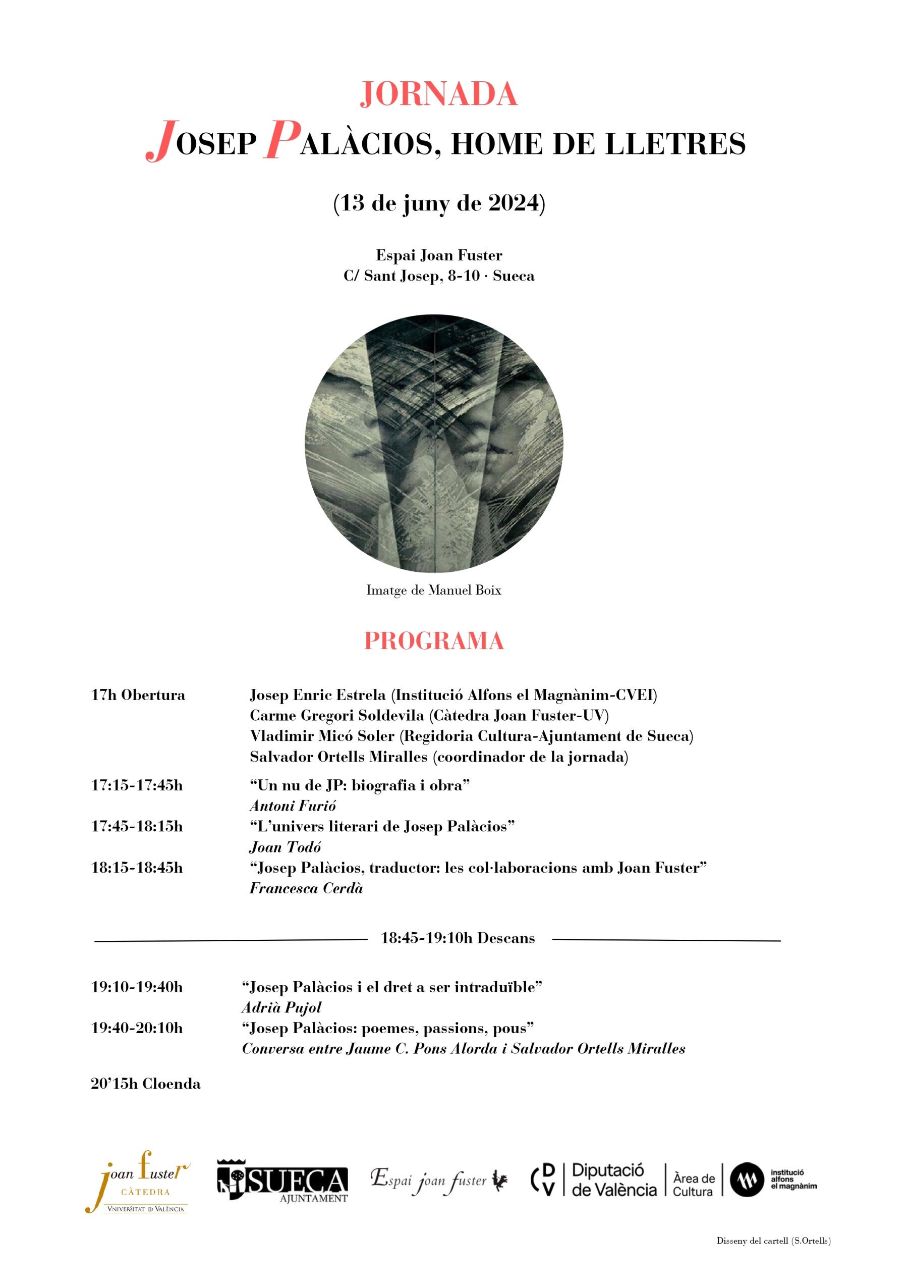 La jornada també comptarà amb l’assistència de Josep Enric Estrela, director de la Institució Alfons el Magnànim-CVEI, i del regidor Vladimir Micó, en representació de la Regidoria de Cultura de l’Ajuntament de Sueca. Com a complement final de la jornada, a inicis de 2025, es publicarà un volum col·lectiu, coordinat per Salvador Ortells i il·lustrat per l’artista plàstic Manuel Boix, que reunirà les ponències dels conferenciants i textos de Maria Dasca, professora de la Universitat Pompeu Fabra, de l’escriptor Martí Domínguez i d’Abel Guarinos, exdirector de l’Institut Valencià de Cultura i reconegut gestor cultural.