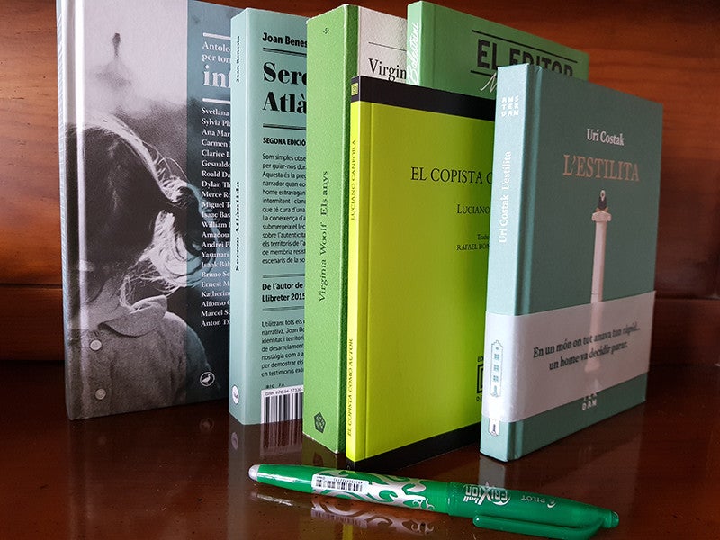 M’agrada emprar també el color verd quan treballe amb els llibres. Més enllà del roig, associat sovint a la marca més vistosa, a la correcció i, fins i tot, a la censura, el verd fa més amables les indicacions sobre el paper, vull creure. I ara, que ens hem quedat amb els llibres acabats als magatzems, amb novetats a les impremtes i amb galerades sobre les taules… amb llibreries tancades i sense fires, sense sant Jordi al carrer, sense una vertadera primavera per a la cultura, hem de continuar apostant per la lectura i la compra (diferida però de proximitat) de llibres.