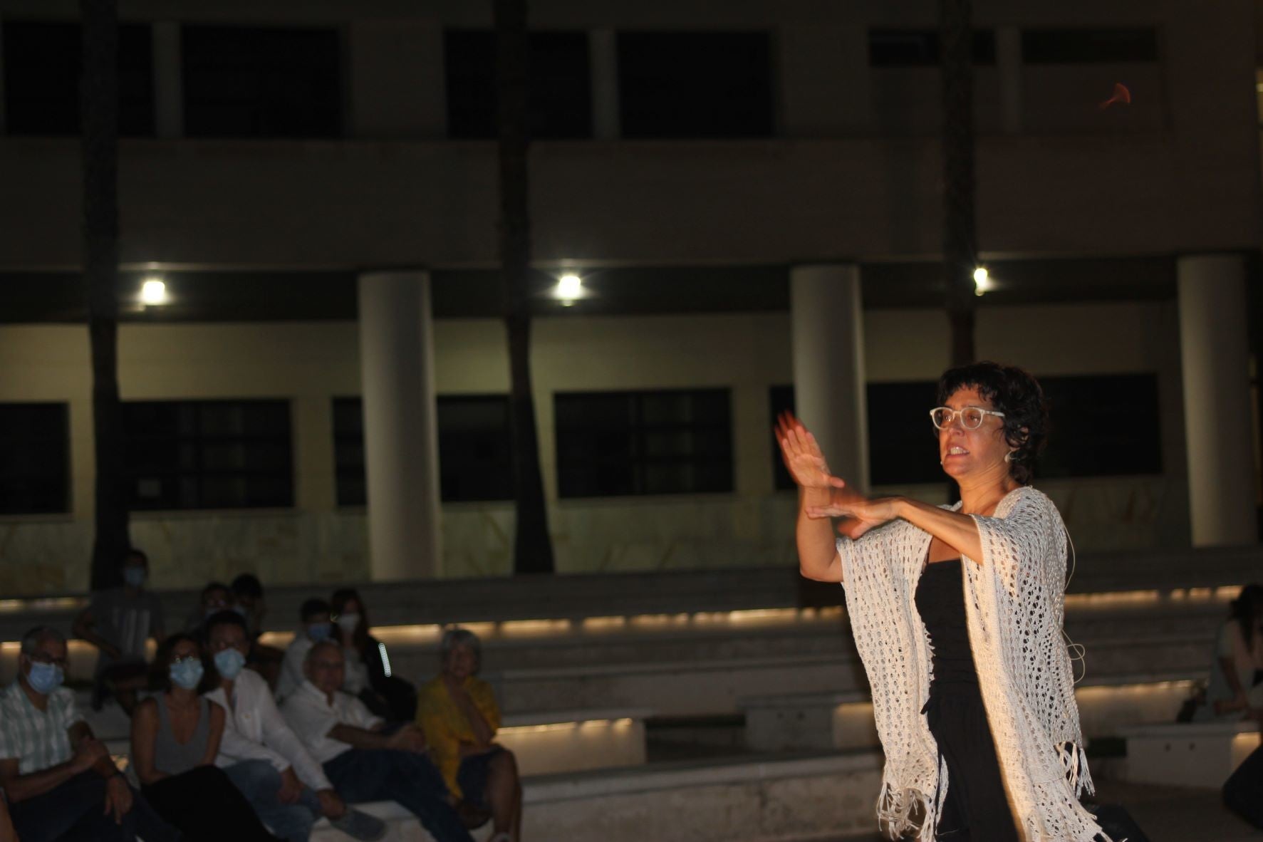 Hi ha persones que saben escriure històries i n’hi ha d’altres que saben contar-les. Amb l’actriu Emma Lobo, la vetlada va engegar la part més desenfadada. Contadora d’històries i materialitzadora d’idees, aquesta comunicadora creu en el poder de la paraula i tot allò que amb ella pot transmetre. Tal com ella mateixa es descriu, creu profundament en el monòleg i l’empra com a eina de treball per a l’animació lectora en escoles o biblioteques. De la seua veu, vam poder experimentar noves emocions amb la rondalla «El gegant de romaní». Una versió particular que ens va mantindre alerta amb pujades i baixades tan pronunciades com aquelles escales a través de les quals s’arribava al castell del gegant.
