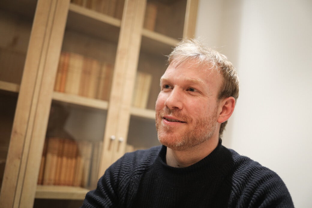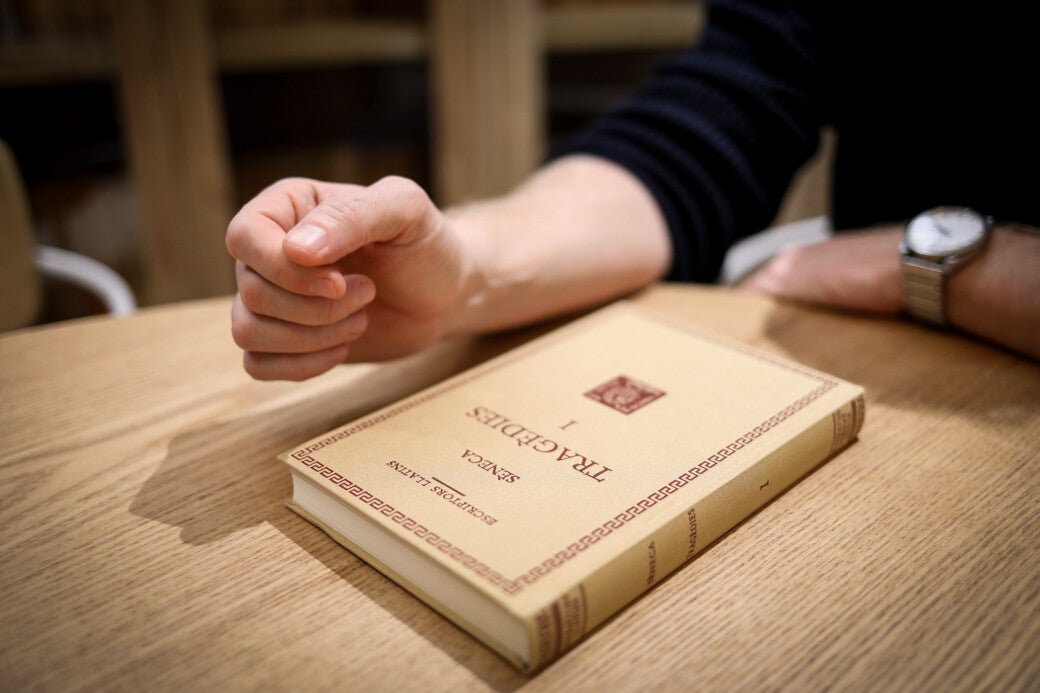 Roger Aluja (Barcelona, 1985), llicenciat en filologia clàssica i filologia catalana per la Universitat de Barcelona i doctor en filologia grega per la mateixa universitat, fa deu anys que és l’editor de la col·lecció. Em rep molt amablement a la seu, ben funcional, que La Casa dels Clàssics té al Raval de Barcelona.
