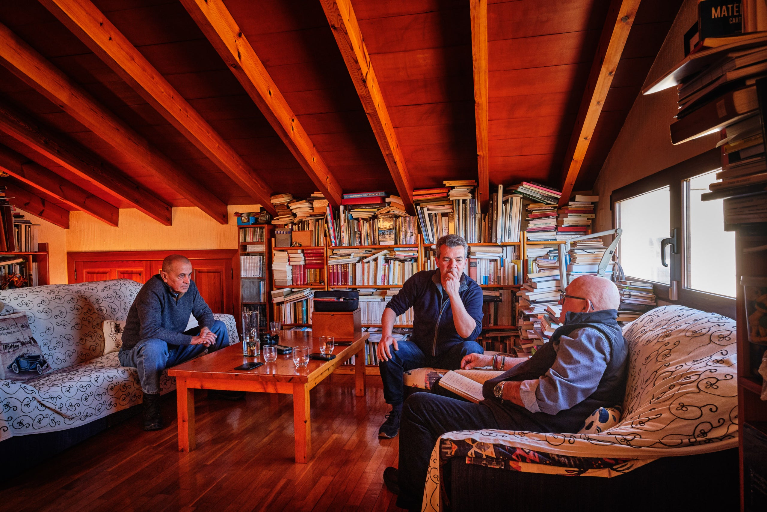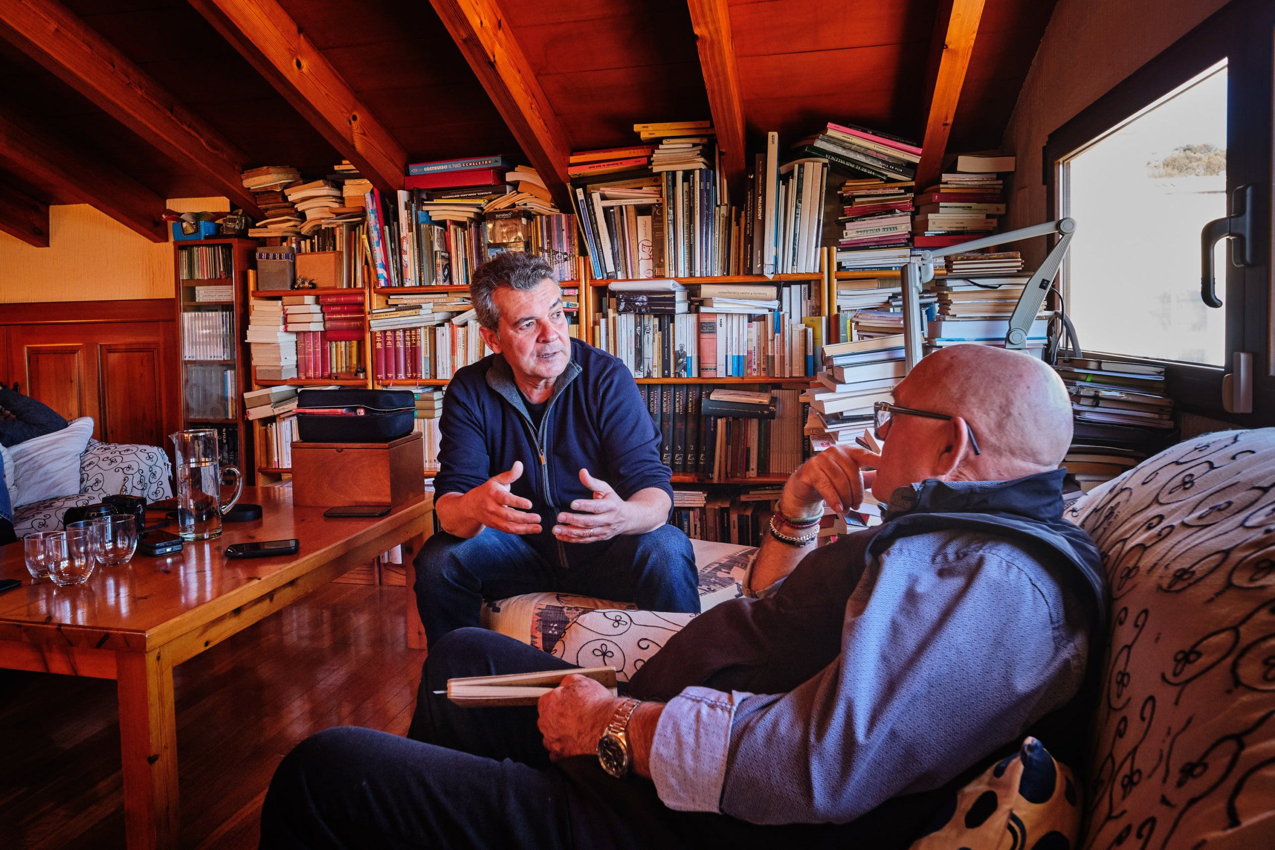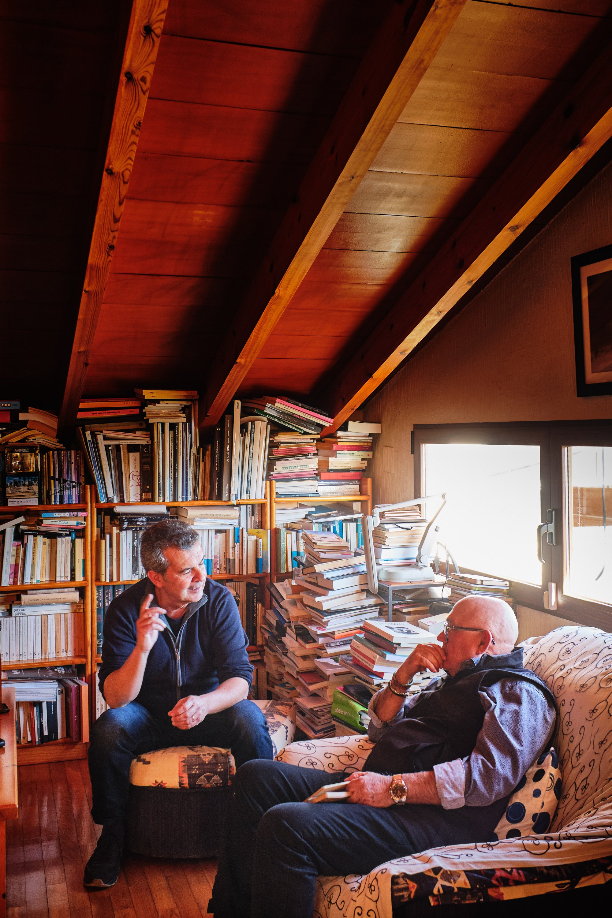 La trobada té lloc molt a prop del port d’Altea, a la casa pairal de Joan Borja, un espai que conserva l’olor antiga de les cases que han vist créixer diverses generacions. M’acompanyen el coordinador de La Veu dels Llibres, Víctor Labrado, i, com en totes les entrevistes, el fotògraf Francesc Vera.