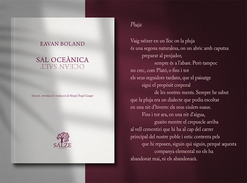 Salze Editorial ha presentat Sal oceànica, de la poeta Eavan Boland (Dublín, 1944-2020), traduïda al català per Miquel Àngel Llauger.