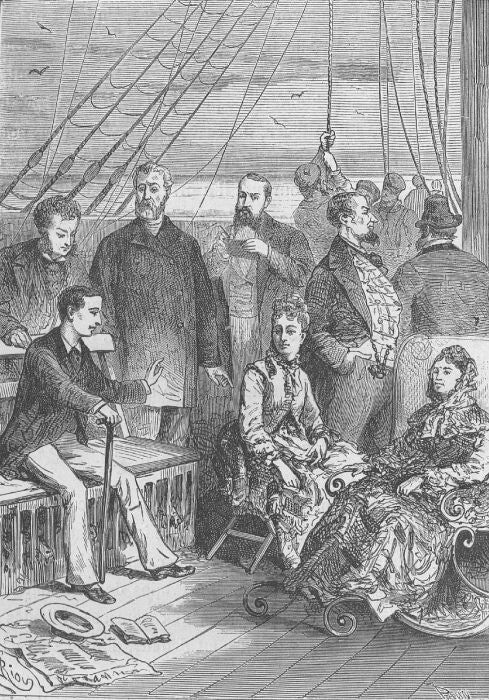S’embarca el 27 de setembre de 1869 al veler Chancellor —“un admirable vaixell de nou-centes tones d’arqueig”, bastit només dos anys abans i carregat de bales de cotó— per fer la travessia des de Charleston, a Carolina del Sud, fins a Liverpool.
