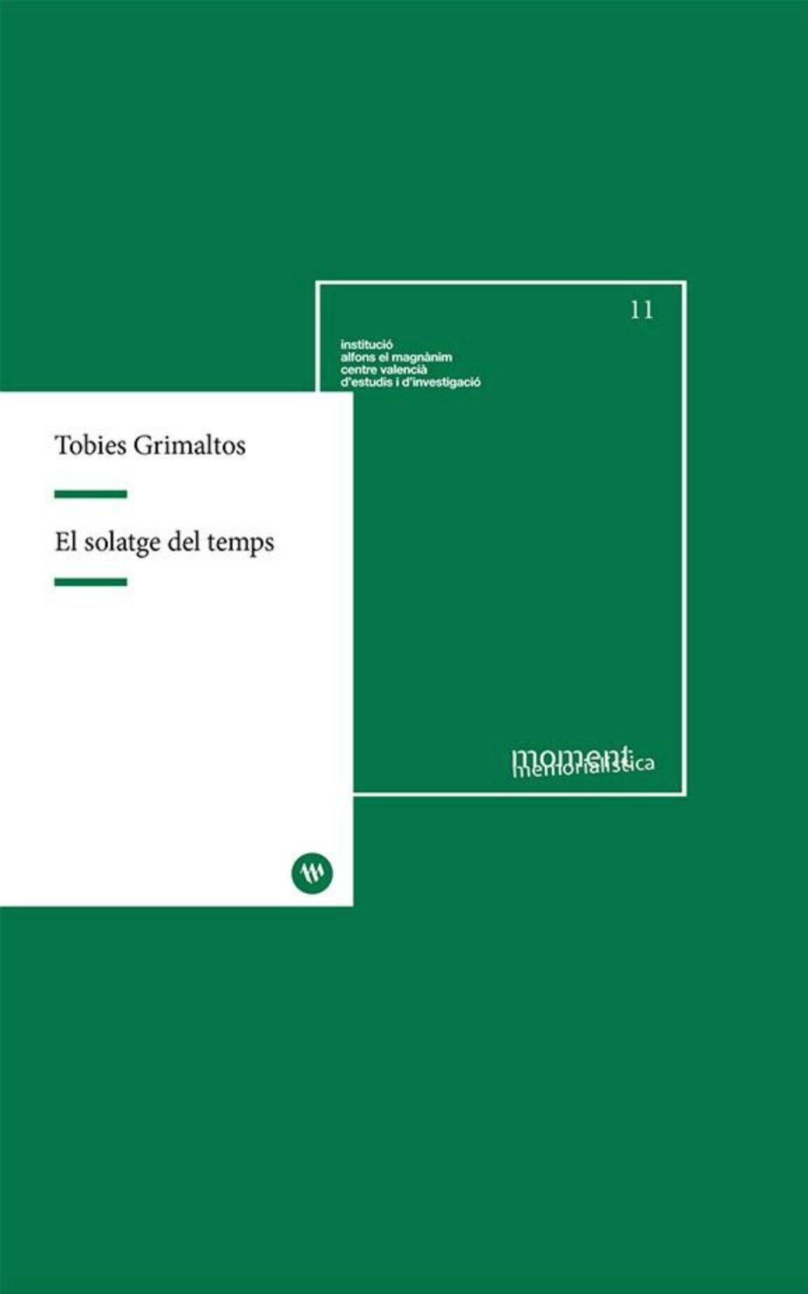 Tobies Grimaltos retorna a la seua infantesa amb la reedició d’una de les seues obres més personals, El solatge del temps, que publica, ara, Alfons el Magànim en la col·lecció Moment Memorialística, catorze anys després de la primera edició. Amb aquest llibre, Tobies rescata episodis de la infantesa en un context d’un poble rural, Castelló de la Ribera, que vivia, com tot el País Valencià, un procés de transformació molt profund.