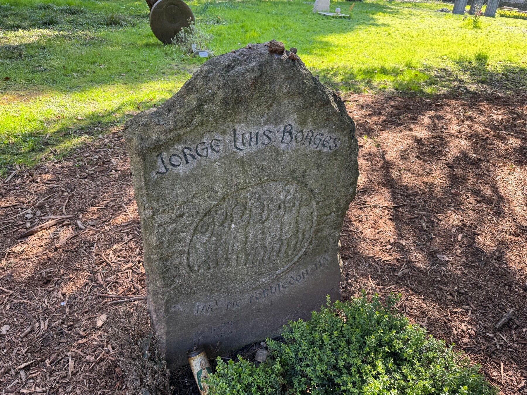 M’han informat que hi ha la tomba de Jorge Luis Borges i la localitzo amb una relativa facilitat. La làpida té unes inscripcions ben enigmàtiques, que us convido a explorar. Porto a la motxilla Poemes essencials, de Joan de la Creu, que ha traduït Pere Lluís Font, el darrer premi d’honor de les lletres catalanes.