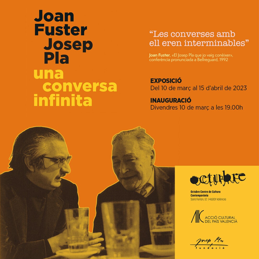 Les trajectòries vitals, paral·leles i singulars alhora, de dos escriptors com Joan Fuster i Josep Pla, distants en el temps, en la geografia i en mentalitats, van convergir a partir del 1959 en una complicitat intel·lectual i literària que prengué forma de conversa inacabable. Molts anys després, aquesta conversa es materialitza i pren forma en l’exposició «Joan Fuster i Josep Pa, una conversa infinita», una mostra que des del passat i fins al proper 15 d’abril, es podrà visitar a València, a l’Octubre Centre de Cultural Contemporània.