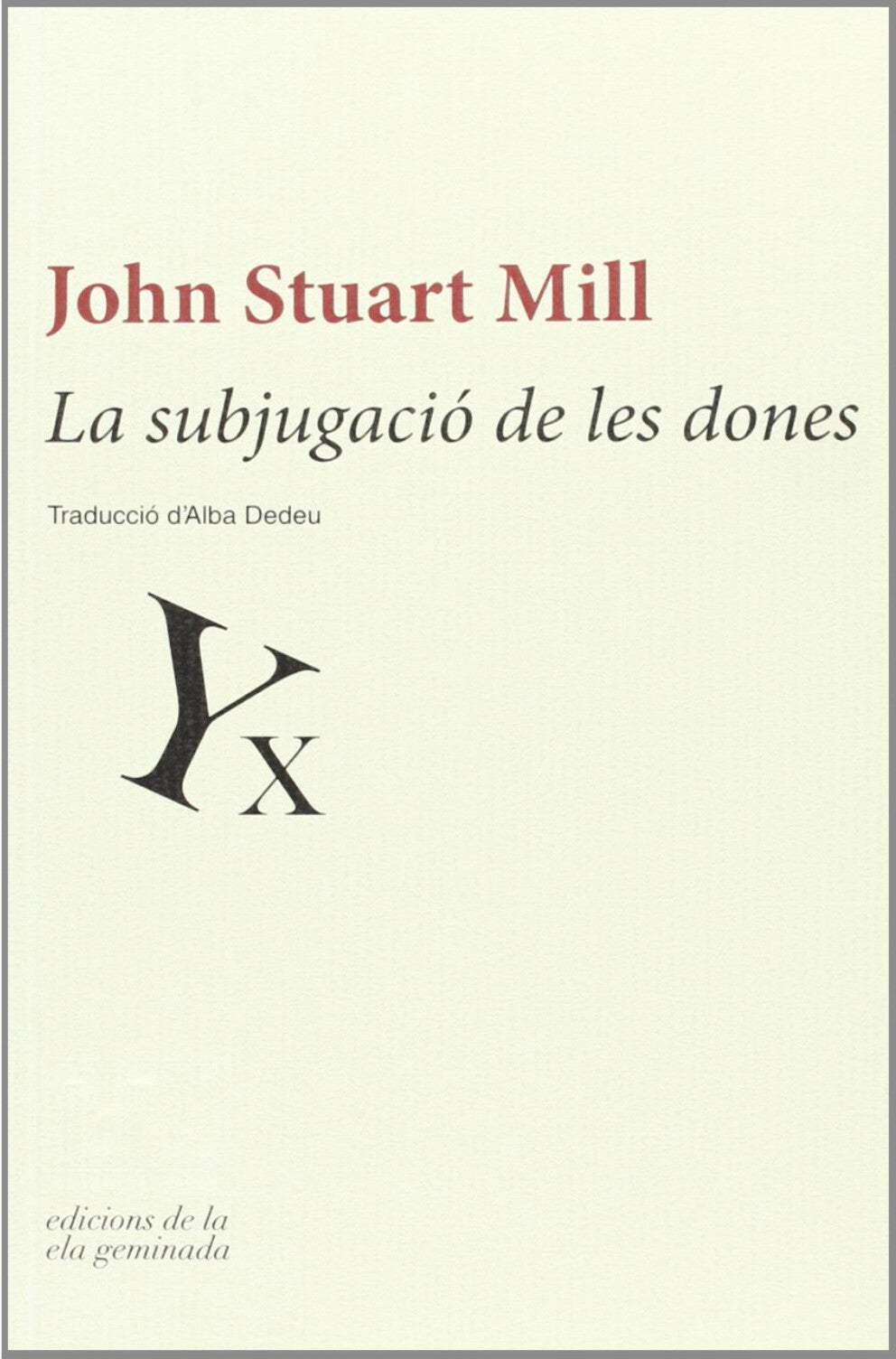 Edicions de la Ela Geminada va editant i reeditant, dins de la seua col·lecció Quadrivium, traduccions al català de clàssics de la filosofia i el pensament. I ho fa d’una manera ben acurada, tant formalment com material. Un d’aquests clàssics és La subjugació de les dones, de John Stuart Mill. De Mill i de Harriet Tylor Mill, la seua esposa, caldria dir; també de la filla d’aquesta, Helen Tylor, en alguna part. Així ho reconeix el mateix Stuart Mill en l’autobiografia.