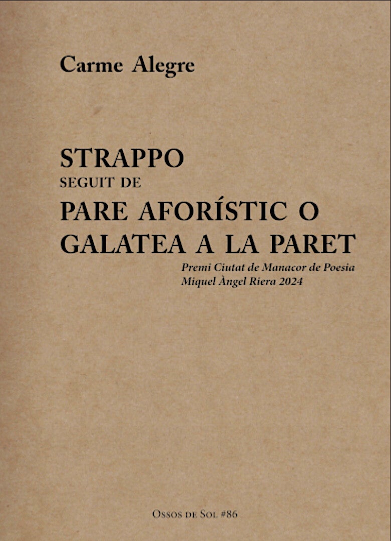 Amb Strappo seguit de Pare aforístic o Galatea a la paret, Carme Alegre apunta amunt en un primer esglaó d’impacte que tant de bo sigui l’inici d’una gran, i genuïna, aventura poètica.