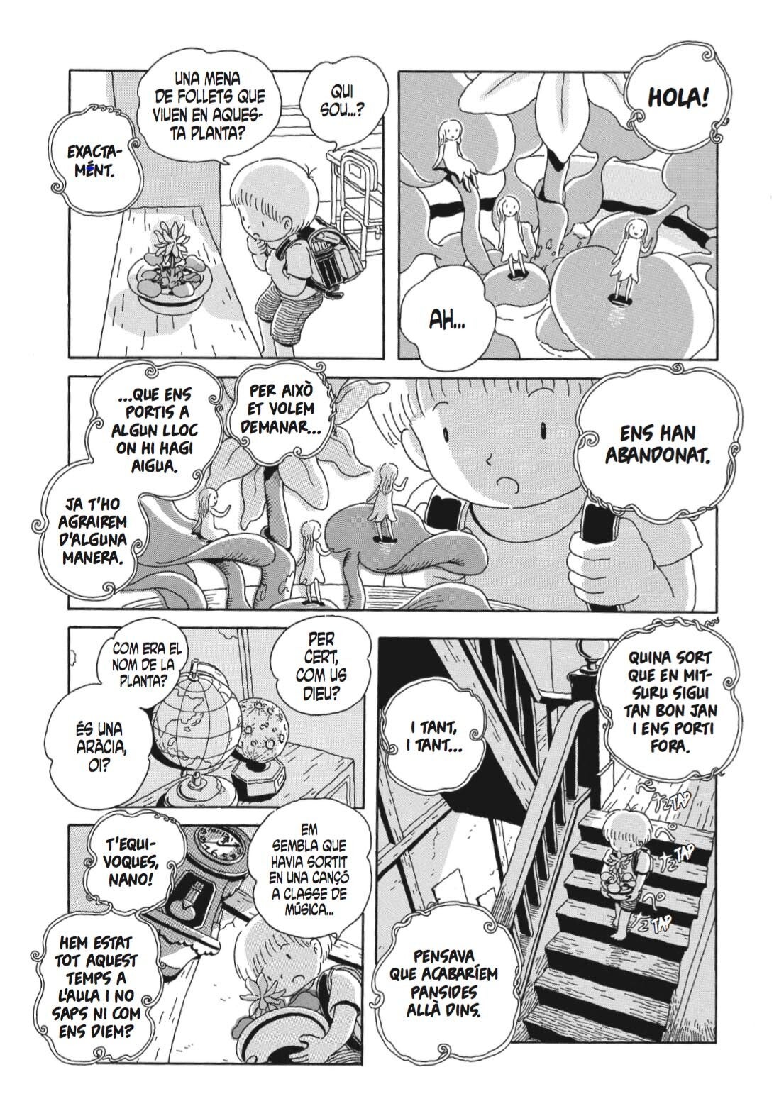 Dividida en un total d’onze capítols i un epíleg, l’obra ens presenta el Mitsuru, una mica oblidadís i pocatraça, qui l’últim dia de classe es deixa la motxilla a l’aula i, en tornar-hi, s’hi troba una planta ben especial: un jacint d’aigua que sembla albergar sota les fulles una mena de follets diminuts que li parlen i li demanen ajuda en una llengua que només ell pot entendre.