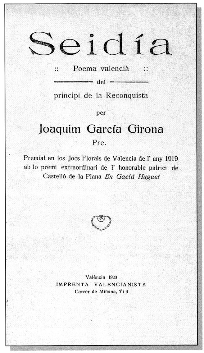 El 2020 s’escau el centenari de la publicació del poema èpic Seidia (1920), de Joaquim Garcia Girona, premiat als Jocs Florals de Lo Rat Penat de València el 1919. Aquesta obra cabdal va ser qualificada per l’escriptor Ernest Martínez Ferrando com «el major esdeveniment literari en la república de les lletres valencianes des dels dies del patriarca Llorente».