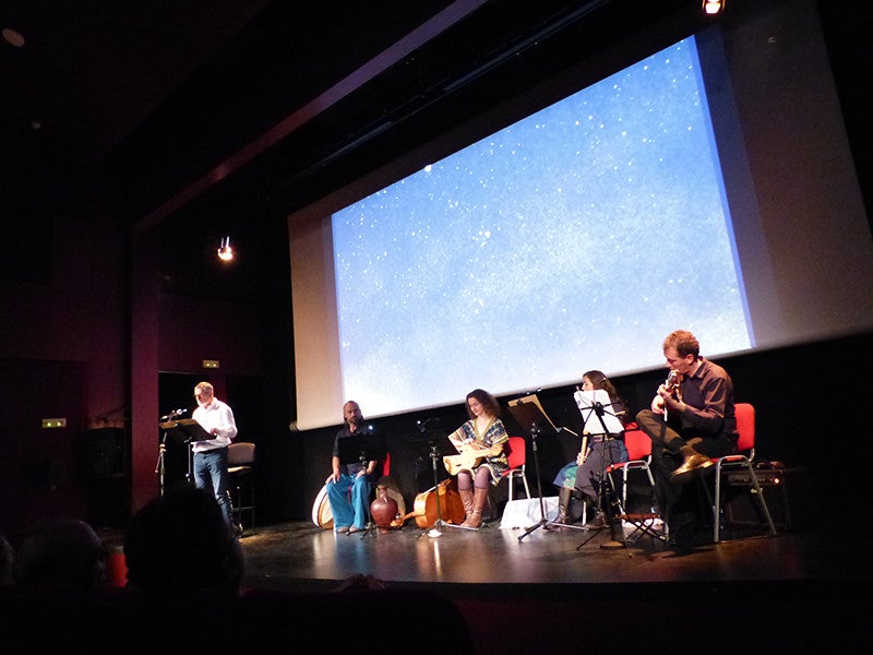 En acabar, el grup Melodemodomies —format pel rapsode Tomàs Llopis, Miquel Pérez Perelló, musica original i guitarra, Maria Jesús Moreno a les flautes, Glòria Aleza a la viella i instruments de corda, i Diego López a la percussió—, va oferir un espectacle poètic i musical basat en els cants d’amor i mort d’Ausiàs March, acompanyat per la projecció dels dibuixos de Joan Castejón on demostra el seu domini excepcional per retratar l’anatomia humana.