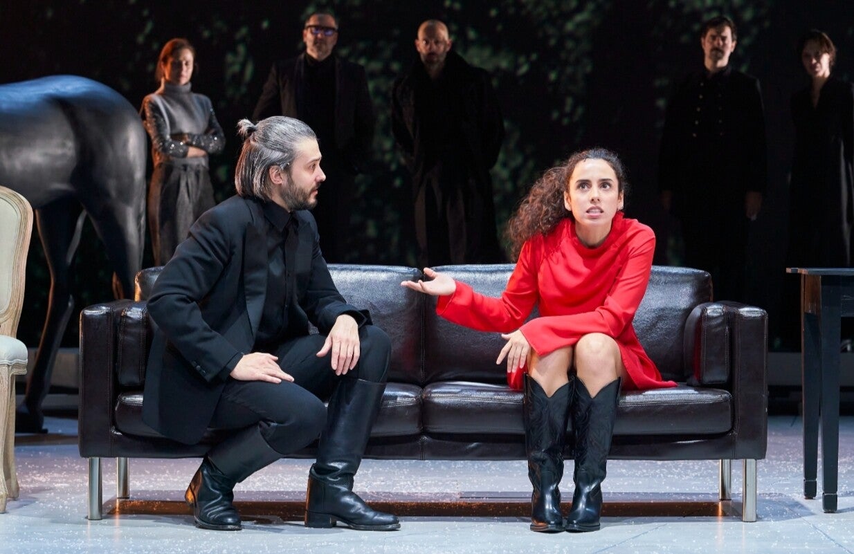 El primer acte captiva amb aquest romanç a quatre bandes d’estil italià en què ningú és correspost. Levi (Bernat Quintana) esperançat per Kitty (Miriam Moukhles), Kitty per Vronski i Vronski per Anna, el temps s’atura per ells i la passió es comença a pronunciar amb una espurna. La densitat dramàtica de l’escena del vals arriba a la cúspide quan una Kitty radiant debutant en societat –i, per tant, en el mercat matrimonial– col·lapsa després de cantar per si la balada de Mina Oggi sono io.