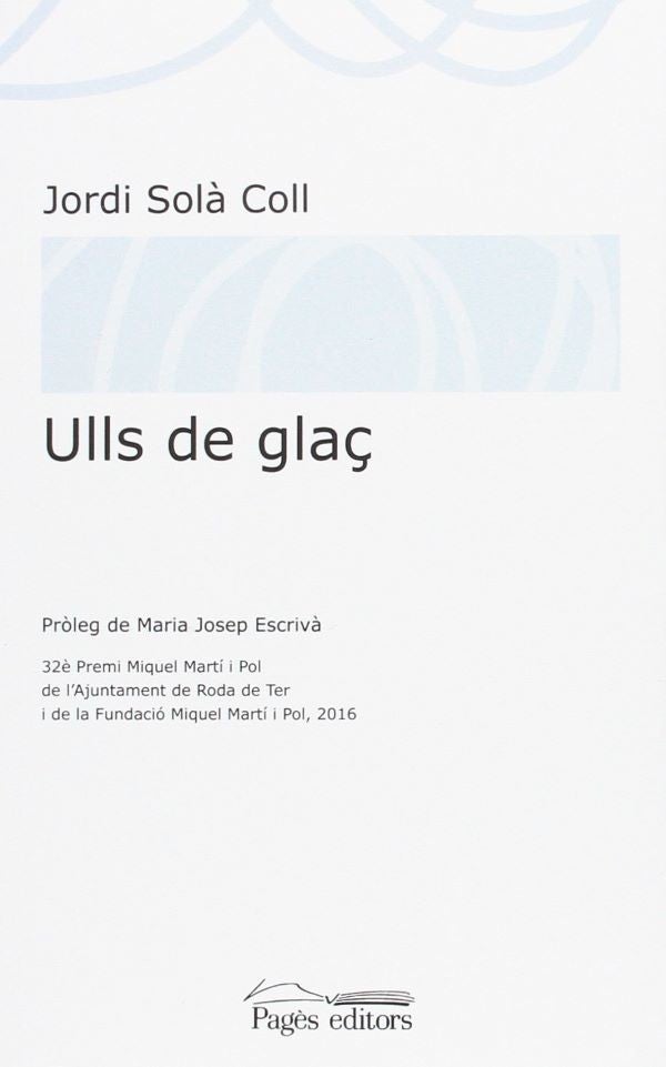 A Ulls de Glaç, Jordi Solà ens introdueix en el seu món poètic a través d’un símbol poderós: el pou. Però no el pou negre de la buidor i la mort, sinó un pou on la foscor és el trànsit envers la llum. Del no-res al ser, el camí de la vida entesa com un permanent fluir, el riu d’Heràclit, l’abisme de Nietzsche. Amb aquest símbol l’autor ens convida a dirigir l’esguard cap al més profund, al temps que ens adverteix: allà també hi trobarem uns ulls que ens miren, amb una reciprocitat que encadena i allibera en la mateixa mesura. Així s’ha concebut el poemari, com un duel de mirades d’amor amb aquests Ulls de glaç que, de mica en mica, poema a poema, s’hi van revelant al temps que se’ns claven amb punta incisiva en la consciència.