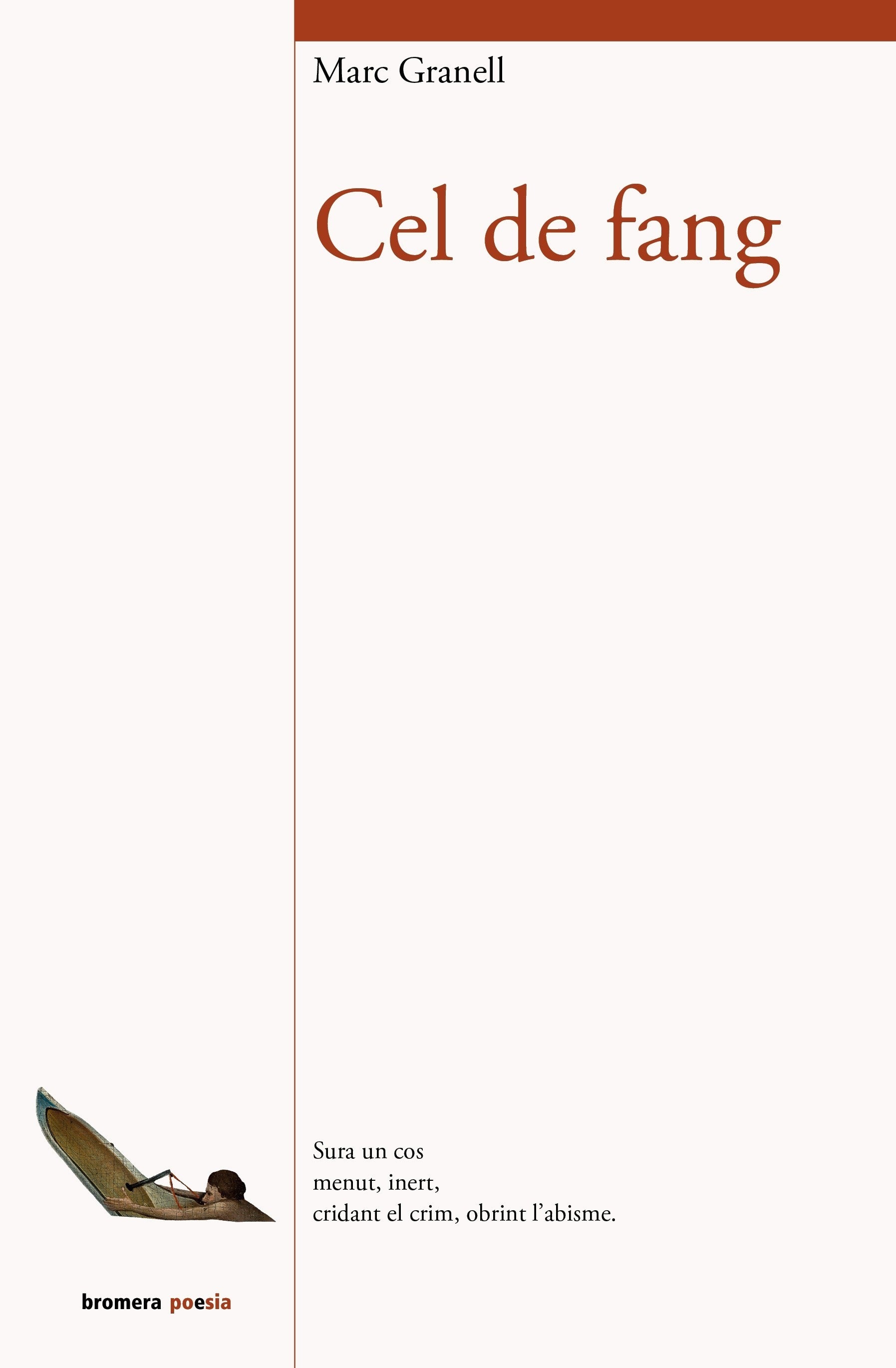 Cel de fang és un llibre acurat, cada citació, cada títol arriben pensats per tal de formar una harmonia, un tot, una estructura, com li agrada dir al poeta. Cada poema comença ja en el seu títol, que en desvela un bri, que et guia, perquè Marc Granell és, per damunt de tot, un poeta que ens guia, ens acompanya, ens fa la poesia més propera i amiga, i no per això, simple ni lleugera, en tot cas, més comprensible. El llibre en ell mateix és un poema: les diferents parts, els títols, les citacions, una construcció. És així com Marc Granell concep els seus poemaris, i aquest darrer n’és una mostra bellíssima, un poemari unitari, amb un fil conductor poderós, versos capaços de colpir-nos, de fer-nos reflexionar, d’emocionar-nos, de despullar-nos davant dels nostres fantasmes que, al capdavall, són fantasmes altament compartits per a la majoria dels éssers humans.