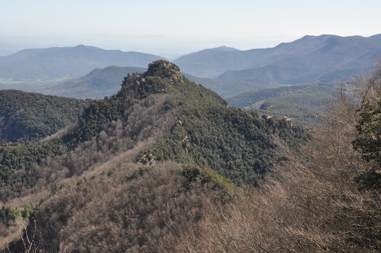 A l’altra banda de la vall, el panorama el domina Finestres amb el Puigsallança, que supera els mil metres: «A dalt de tot hi ha les ruïnes de can Barranc […] Després d’aquella primera vegada hi he tornat sempre que he pogut, faig fotos amb el mòbil a les heures que cobreixen les ruïnes i al rellotge de sol que la pluja va desfent.» Can Barranc, on havia nascut la dona d’en Jordi de Can Sol, morta de càncer, i mare de la Carmina i àvia de la Mar.