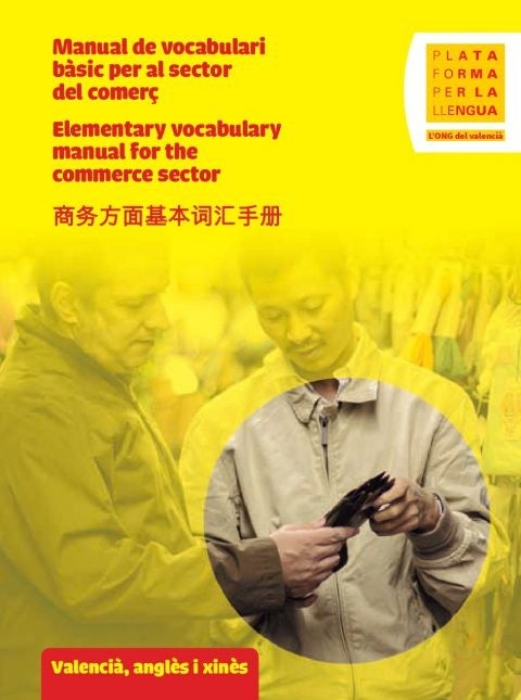 La Plataforma per la Llengua ha publicat un manual de vocabulari bàsic per al sector dels comerciants d’origen xinès, que vol contribuir a la seua integració social facilitant l’accés al coneixement del valencià. La guia inclou lèxic de la roba, lèxic de la fruita i la verdura i lèxic del bar i el restaurant, així com expressions freqüents, salutacions i relacions interpersonals -com ara «Benvingut», «Benvinguda» o «Pots parlar-me en valencià»-, frases d’orientació i lèxic general per a la conversa, amb els dies de la setmana, els mesos i els números. Al manual, les expressions en valencià estan escrites en el registre col·loquial, pensades per a la llengua parlada.