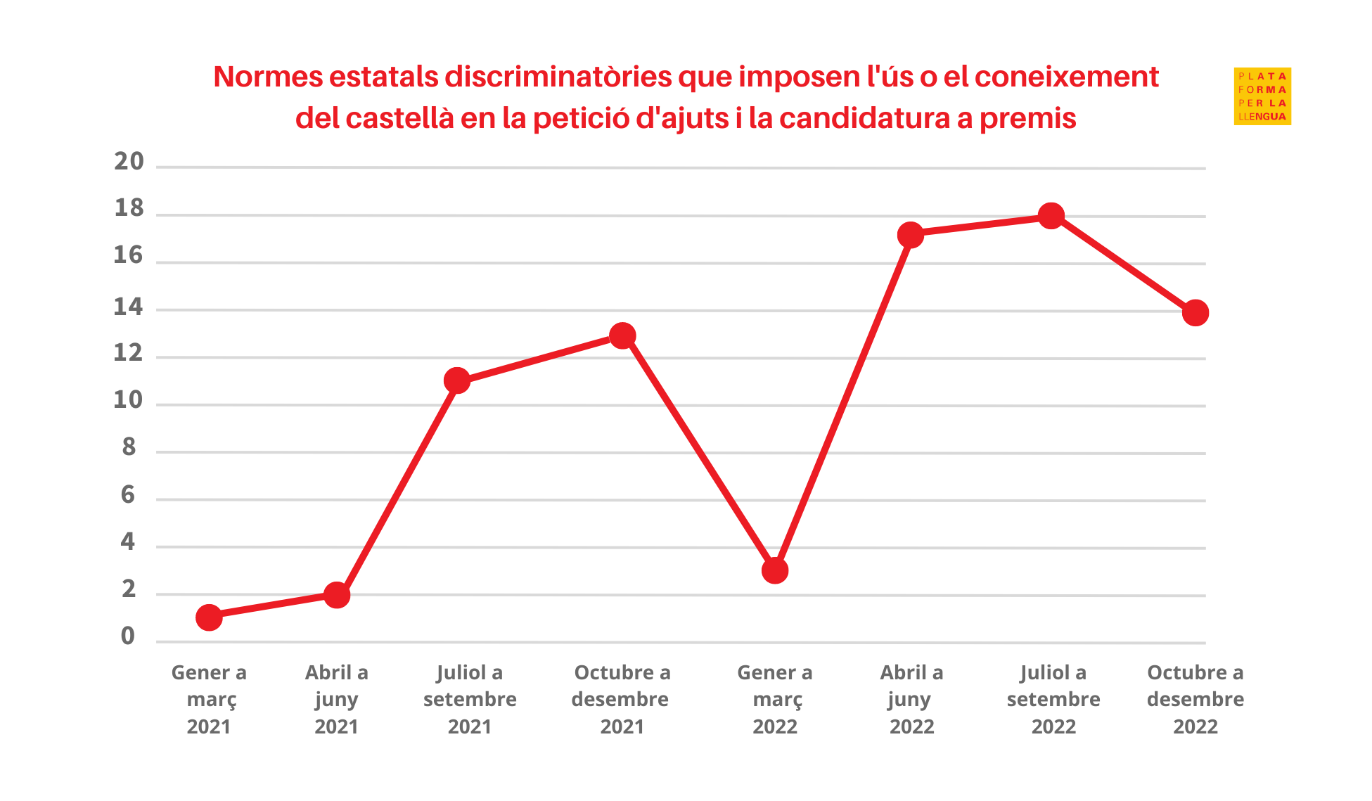 L’aprovació constant de normativa discriminatòria per la llengua catalana, afirmen des de Plataforma per la Llengua, «no és casual, arbitrària ni espontània». En primer terme, aquestes normes «reprodueixen un esquema antiigualitari establert a la Constitució espanyola. Per virtut de l’article 3, el castellà és llengua oficial arreu de l’Estat i és l’única oficial de les institucions generals, mentre que el català només és oficial als territoris on s’ha parlat tradicionalment i en què una norma específica, un Estatut d’Autonomia, ho preveu explícitament. Al mateix temps, l’article 3 també imposa a tots els ciutadans el deure de conèixer el castellà, cosa que a la pràctica significa que els parlants d’altres llengües tenen l’obligació d’aprendre el castellà per conveniència del grup lingüístic majoritari. Segons el Tribunal Constitucional espanyol, a més, el coneixement dels altres idiomes autòctons de l’Estat no pot ser un deure generalitzat en el sentit que ho és el castellà. Aquesta situació jurídica facilita que s’aprovin normes que discriminen el català i n’erosionen l’ús i el coneixement entre la població».