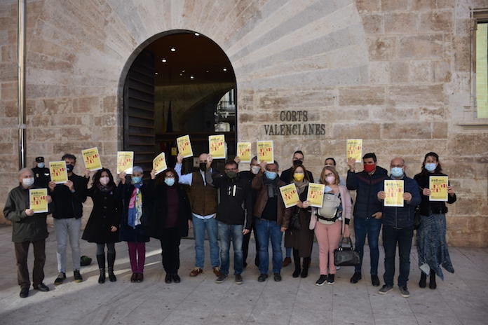 Les organitzacions, amb motiu d’aquesta data, s’han concentrat a les portes de les Corts per reclamar al Consell una Llei d’Igualtat Lingüística que «empare el dret dels valencianoparlants a expressar-se en valencià» i han lliurat l’informe al president del parlament, Enric Morera, perquè ho trasllade a tots els grups polítics.