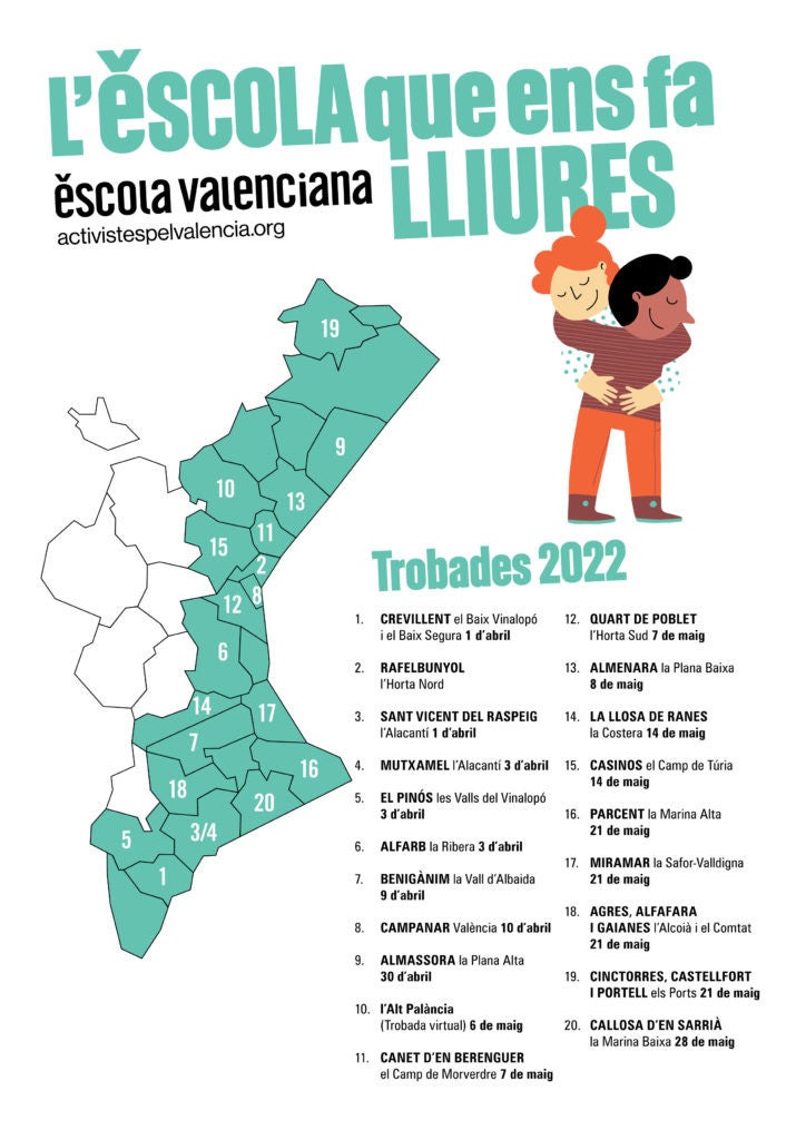 Amb les Trobades 2022, Escola Valenciana reivindica «la llibertat d’una escola diversa, feminista i coeducadora, arrelada, crítica, laica, intercultural, pacifista, democràtica, compromesa, sostenible, universalista i solidària. En definitiva, una escola lliure».