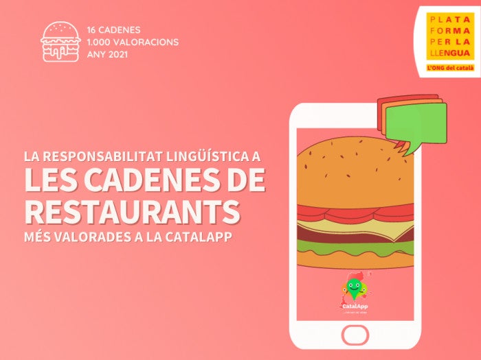 Plataforma per la Llengua ha analitzat la realitat lingüística de setze cadenes de restaurants dels territoris de parla catalana. Les dades s’han extret aquest mes de juny a partir del miler de valoracions que han fet els usuaris de l’aplicació CatalApp, que avalua l’atenció lingüística dels establiments.