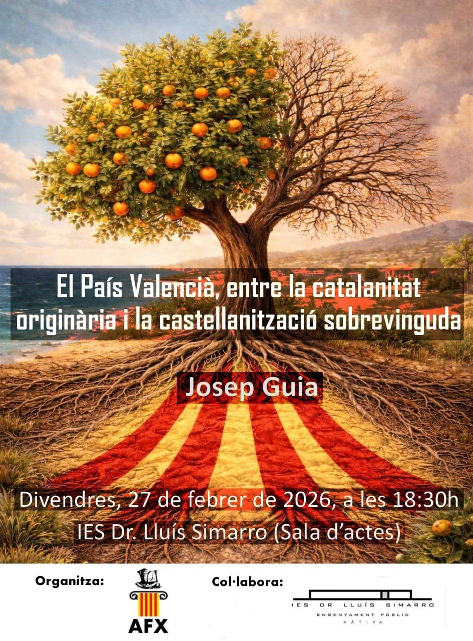 L’Ateneu Filosòfic de Xàtiva (AFX) ha organitzat una conferència del doctor Josep Guia amb l’objectiu de reobrir el debat sobre la identitat valenciana en un context marcat per la polèmica reforma educativa i la tensió cultural al voltant de la llengua. La intervenció, titulada “El País Valencià, entre la catalanitat originària i la castellanització sobrevinguda“, tindrà lloc aquest divendres, 27 de febrer, a les 18.30 hores a la sala d’actes de l’IES Dr. Lluís Simarro de la capital de la Costera.