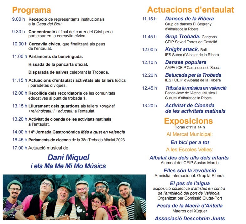 Aquest diumenge 23 d’abril, Albalat de la Ribera (Ribera Baixa) acollirà la 38a Trobada de Centres en Valencià de la comarca.
