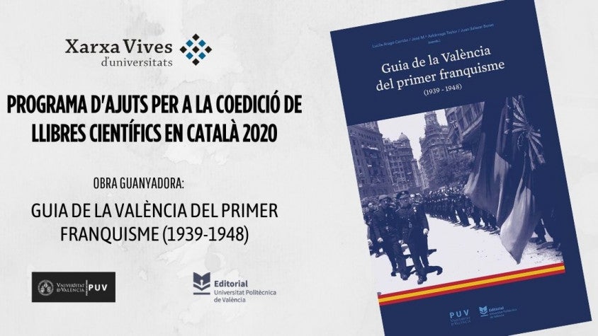 L’obra Guia de la València del primer franquisme (1939-1948) publicada pel Servei de Publicacions de la Universitat de València i l’Editorial de la Universitat Politècnica de València, ha rebut el suport de la segona edició del programa d’Ajuts per a la coedició de llibres científics en català promogut per la Xarxa Vives d’Universitats.