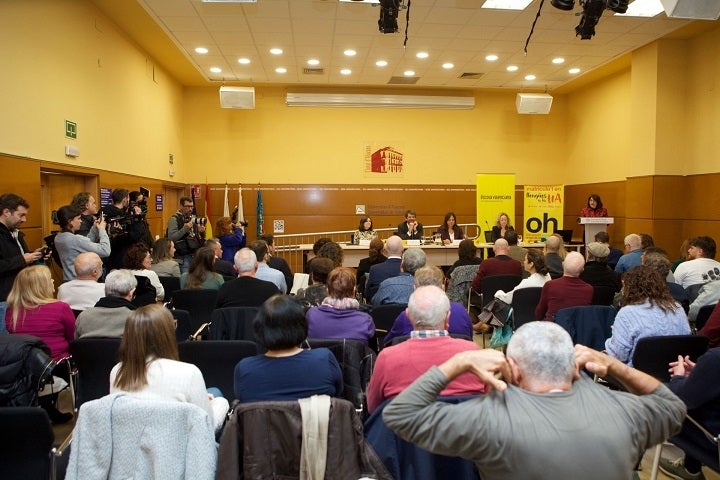 La sala on se celebrà l’acte del ministre Urtasun en el moment en què feia la presentació la rectora de la Universitat d’Alacant | Taller d’Imatge UA