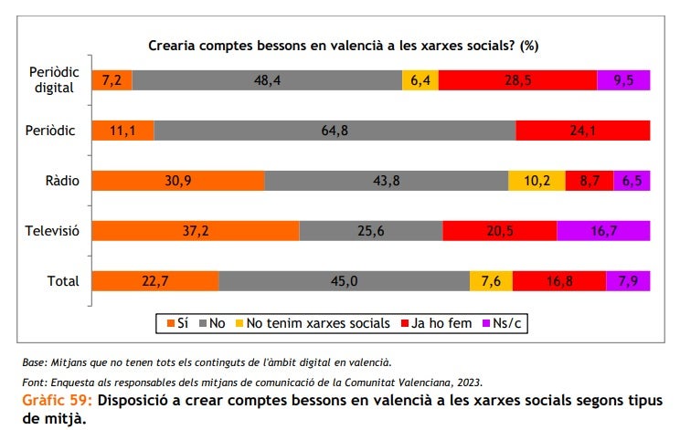 Una altra opció és duplicar els comptes de les xarxes socials en valencià a partir de les que ja estan fetes en castellà, una alternativa que no sol agradar els responsables dels mitjans de comunicació.