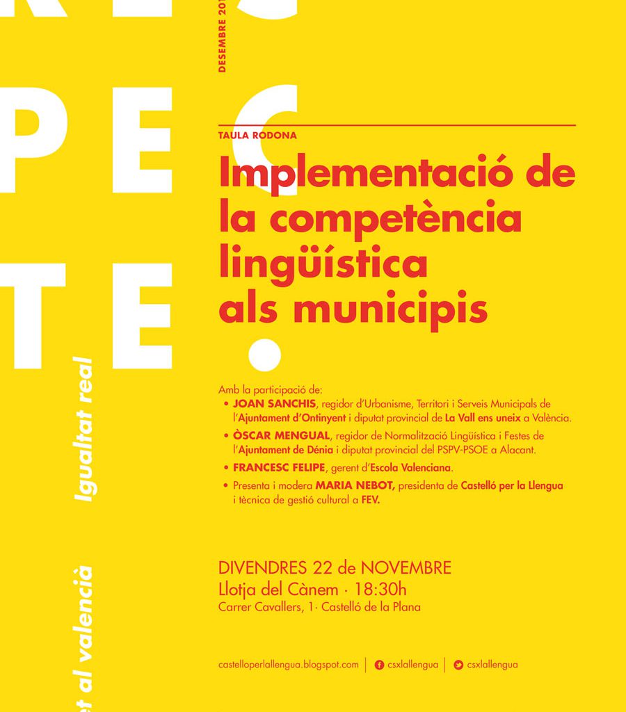 La taula redona versarà al voltant de la implementació de la competència lingüística als municipis com a eina per a assolir la igualtat real entre els valencianoparlants i els castellanoparlants.