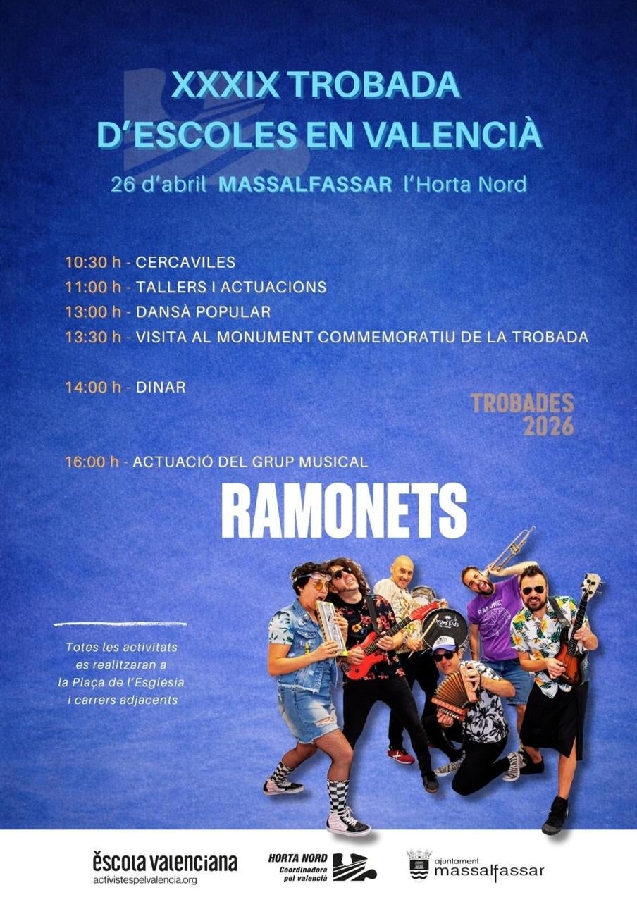 Massalfassar acollirà per primera vegada la Trobada d’Escoles en Valencià de l’Horta Nord, que enguany celebra la seua 39a edició. Del 17 al 26 d’abril, el municipi es convertirà en punt de trobada de la comunitat educativa de la comarca, amb una programació diversa que combina activitats culturals, música, convivència i defensa de la llengua, organitzada per Escola Valenciana en col·laboració amb l’Ajuntament de Massalfassar.