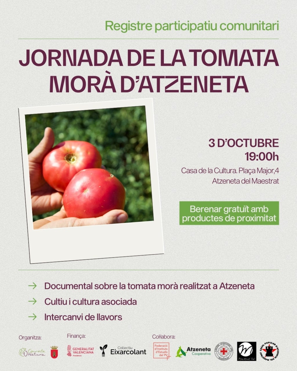 Connecta Natura, una associació que treballa a les comarques del nord del País Valencià per a recuperar, conservar i valorar les varietats tradicionals d’hortícoles i fruitals del nostre territori, ha organitzat una jornada participativa i oberta a tota la ciutadania per a valorar la tomata morada d’Atzeneta del Maestrat, que forma part de la identitat i memòria col·lectiva del poble.