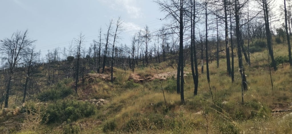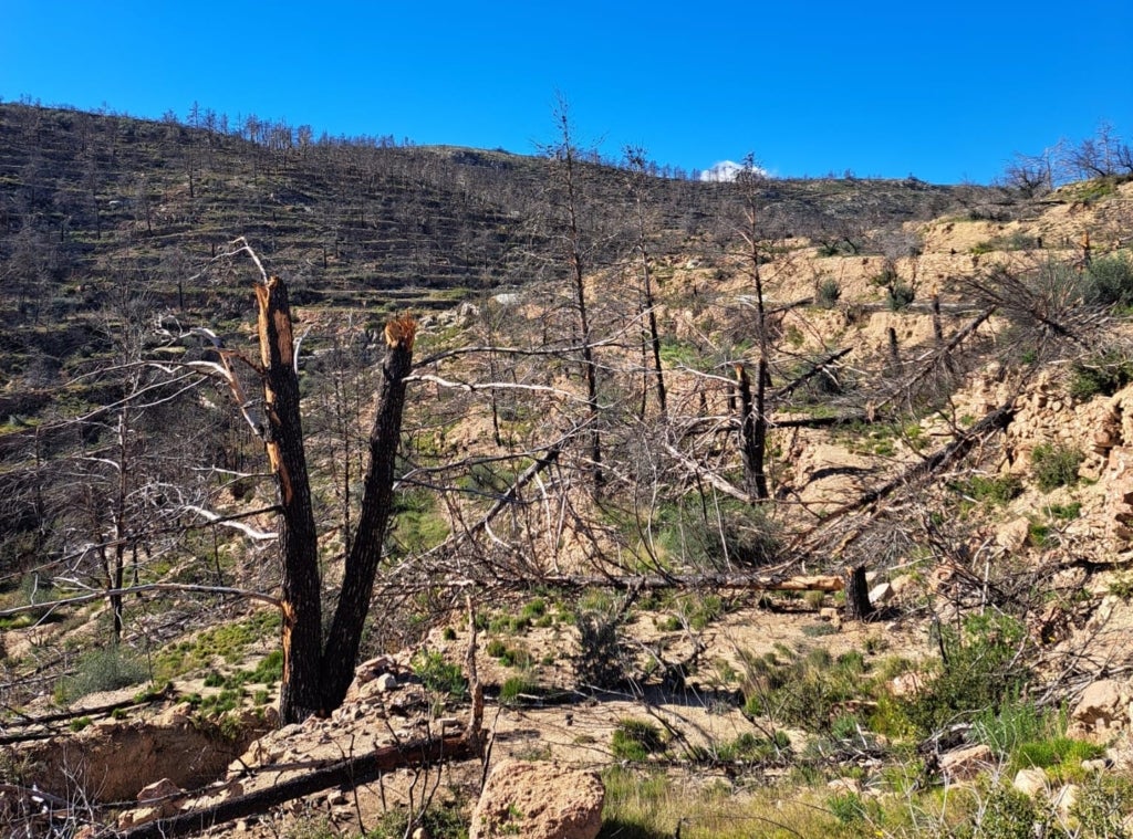 La plataforma Ōriwa, que va sorgir arran de l’incendi de Begís (l’Alt Palància) del 2022, denuncia que tres anys després del foc que va calcinar 10.400 hectàrees dels termes municipals de Begís, el Toro, Sacanyet, Teresa i Toràs, “la major part de l’arbratge cremat hi roman”.