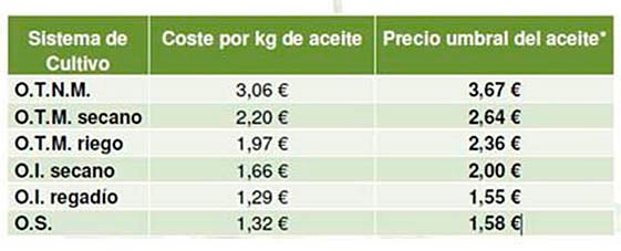 Les dades elaborades per l’Asociación Española de Municipios del Olivo (AEMO) posa de manifest la gran diferència de costos de producció dels diferents tipus de conreu d’oliva existents a l’estat. Les dades situen l’oliverar tradicional a les portes de l’abandonament.
