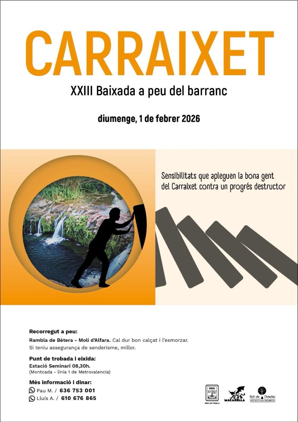 La carta clou amb una apel·lació simbòlica i musical: “No serem, no serem moguts, igual que el pi a prop de la ribera”, cantava Joan Baez. Una idea que resumeix l’esperit del col·lectiu: “Som tossuts i resilients com el Carraixet que reivindiquem cada primer diumenge de febrer, i ja van 23 anys!”.