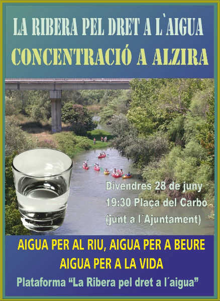 Els lemes de la concentració són: ‘La Ribera pel dret a l’aigua’ i ‘Aigua per al riu, aigua per a beure i aigua per a la vida’.
