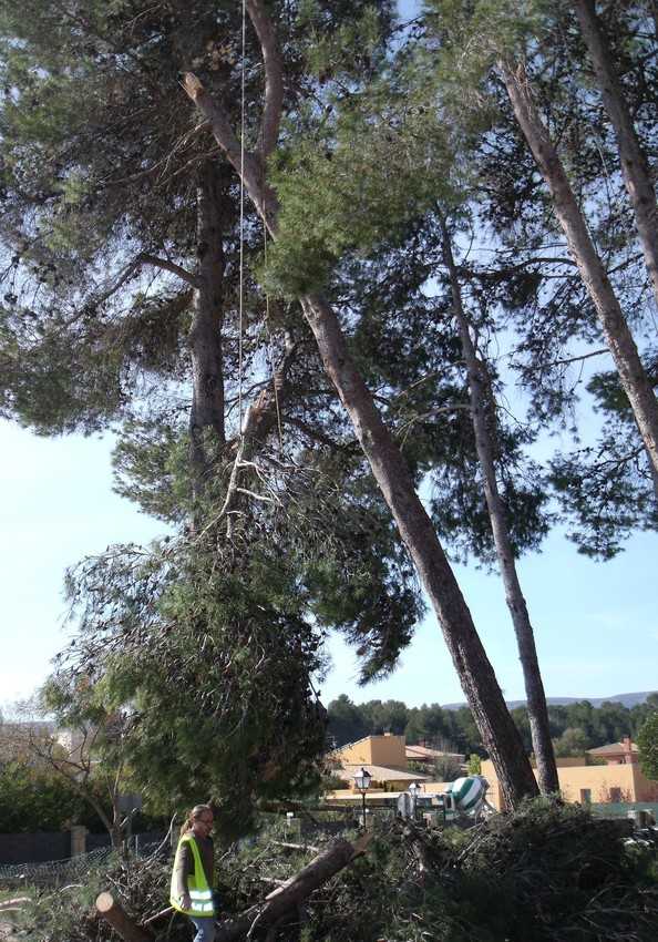 Per això, i amb la supervisió dels tècnics del Departament de Medi Ambient, una empresa especialitzada en tala d’exemplars sense maquinària ha procedit a la retirada d’aquestos pins. “Es tracta d’un sistema modern de tala a partir de l’escalada lliure amb cordes i arnesos (tree climbing), que evita l’ús de maquinària, i que ens ha permès retirar els arbres de manera controlada i sense colpejar ni danyar els arbres adjacents”, explica Cuesta.