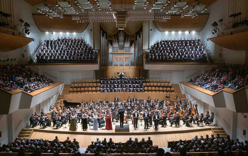 L’execució del passat divendres va colpir gràcies als ensordidors fortíssims dels 460 intèrprets. Tanmateix, més enllà dels sentiments celebratius, molts mecanismes musicals van tornar al passat, com ara els forts pels forts, metalls greus estrepitosos, errades d’emissió en les trompetes i falta d’homogenittzació entre les seccions instrumentals. També, les portentoses masses vocals que aportaven el Cor de la Generalitat, el Philharmonia Chorus i l’Orfeó Valencià van sofrir les exigències que provenien des del pòdium. Calia cobrir el Palau d’un bany de masses i el fort, ensordidor, és el millor regal per a unes orelles que se sorprenen amb facilitat. Va ser necessari esperar fins a la segona part, amb els textos de Goethe, perquè la corda de l’Orquestra de València aportara un bri d’exquisitesa.