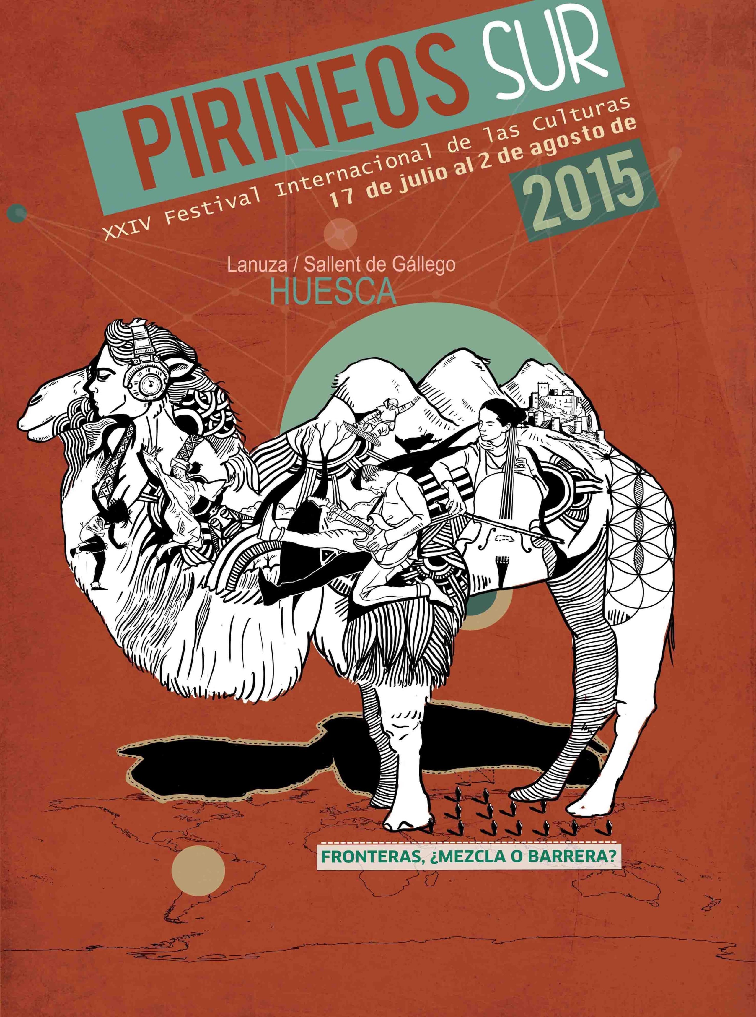 Però, el festival Pirineos Sur és molt més que música, i paral·lelament, per tal de demostrar que “la música és cultura, encara que es faça de nit”, deia Luís Calvo, es podrà gaudir durant el dia de la programació Dias de Sur amb gastronomia i artesania amb Mercados del mundo, de circ i tallers de música, exposicions fotogràfiques i presentacions de llibres. Com cada any, l’edició compta amb un leitmotiv, un títol o lema, enguany és ‘Frontera, ¿mezcla o barrera?’, ja que tots dos escenaris, Lanuza i Sallent de Gállego enclavats a la Vall de Tena, d’una manera o una altra han estat zona de fronteres, recordava aleshores Calvo anècdotes de la garita de la Guàrdia Civil i les duanes com un record de la frontera al Portalet, a tocar del festival. El festival proposa reflexionar sobre aquesta mena d’incongruència, també hi haurà lloc per als documentals i el cinema centrats en el tema de les fronteres, però, per això acabava Luís Calvo la presentació del festival amb una reflexió, “¿quin sentit té, avui alçar més i més i endurir més i més, per exemple, la tanca a Ceuta i Melilla, perquè diuen representa, la immigració il·legal, un perill per a la Unió Europa?, i després t’assabentes que per aquesta zona entren un 5, un 6 % de persones. Tants murs, tantes barreres, tant de mal i després un 95% arriba a Europa amb avió i amb un visat. Quin sentit té construir murs al segle XXI?”, per això està també la música per trencar les fronteres, “també les mentals i les econòmiques que també existeixen més enllà de les físiques dins les ciutats”, afegia Calvo, i més quan conflueixen propostes d’arreu del món amb vivències i visions pròpies i particulars.