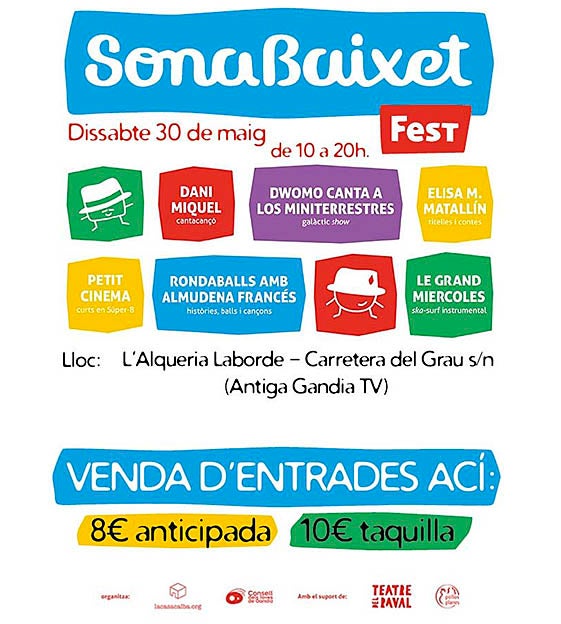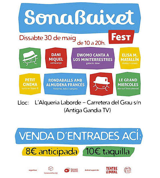 El Sona Baixet Fest proposa activitats musicals com l’actuació de Dani Miquel amb els Ma-Me-Mi-Mo-Músics aprofitant per presentar el darrer treball ‘De Vinaròs a Oriola el país vola’, també podrà gaudir-se del peculiar xou dels Dwomo i la proposta de Ska surf-instrumental Le Grand Miercoles.